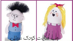 در تصوير بالا، تخممرغها به شکل آدمک دختر و پسر در آمده است. براي اين کار به رول / لوله داخل دستمال کاغذي، مقوا، کاموا، چسب و قيچي نياز داريد.