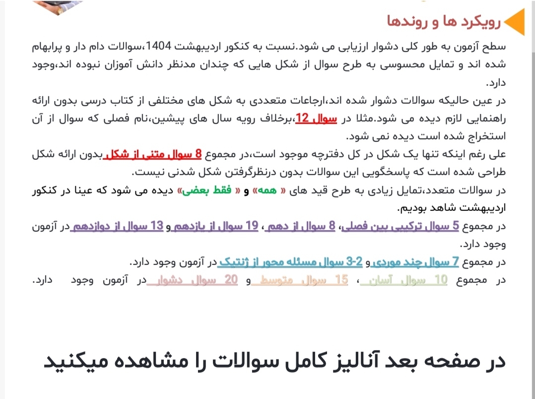 همچنین برای تحلیل و بررسی کنکور 1404 رشته ریاضی (اینجا کلیک کنید).