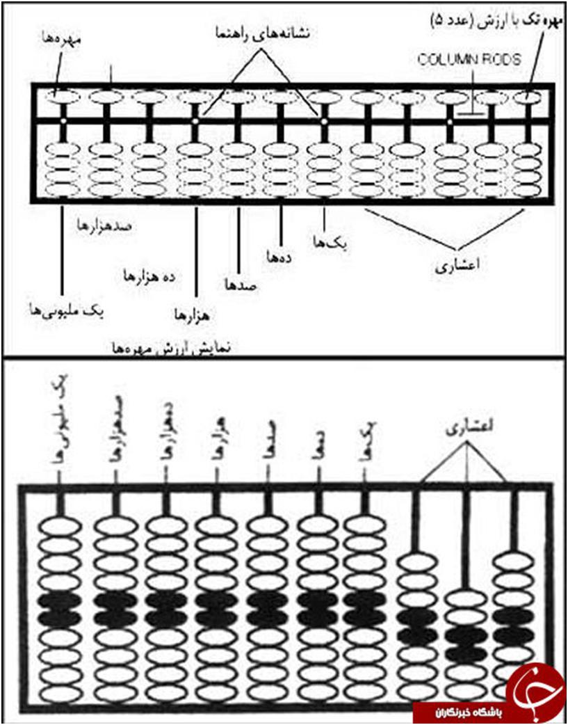 در یک چرتکه حالا در ستون یکان ۸ مهره و در ستون دهگان ۴ مهره و در ستون صدگان ۶ مهره و در ستون یکان هزار ۳ مهره قرار گرفته است در نهایت جواب ضرب ما ۳۶۴۸ خواهد بود.