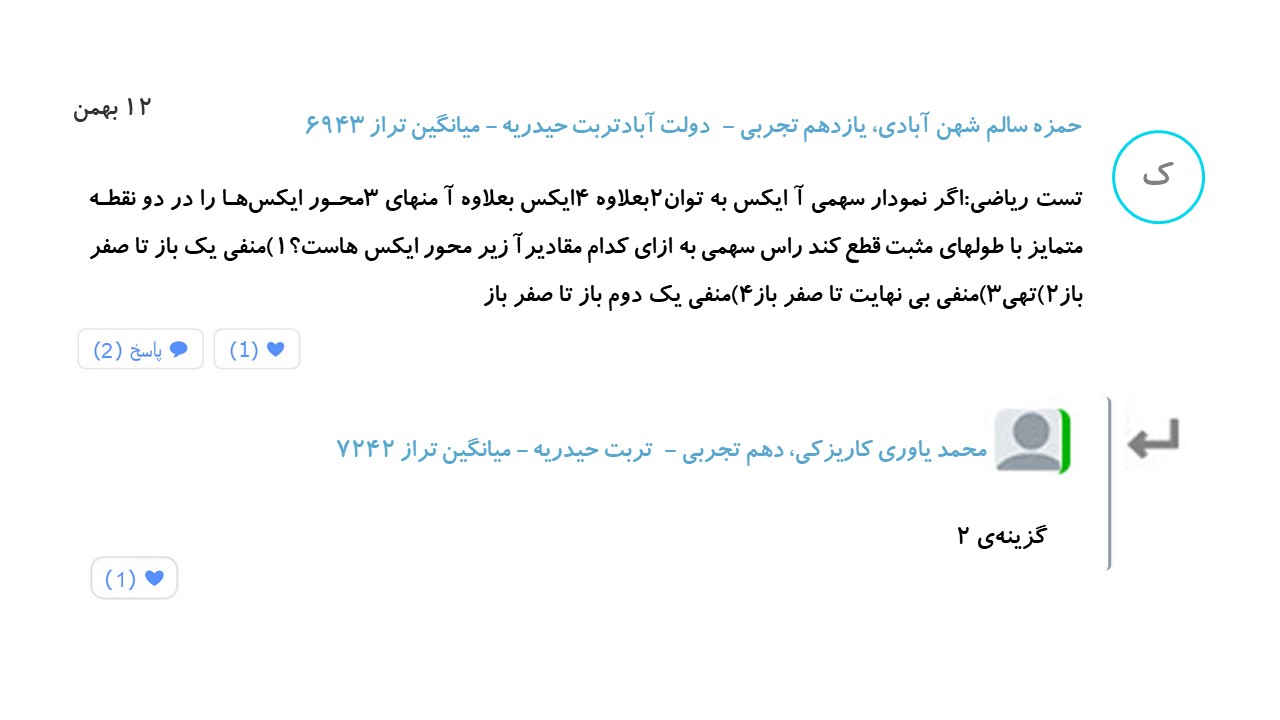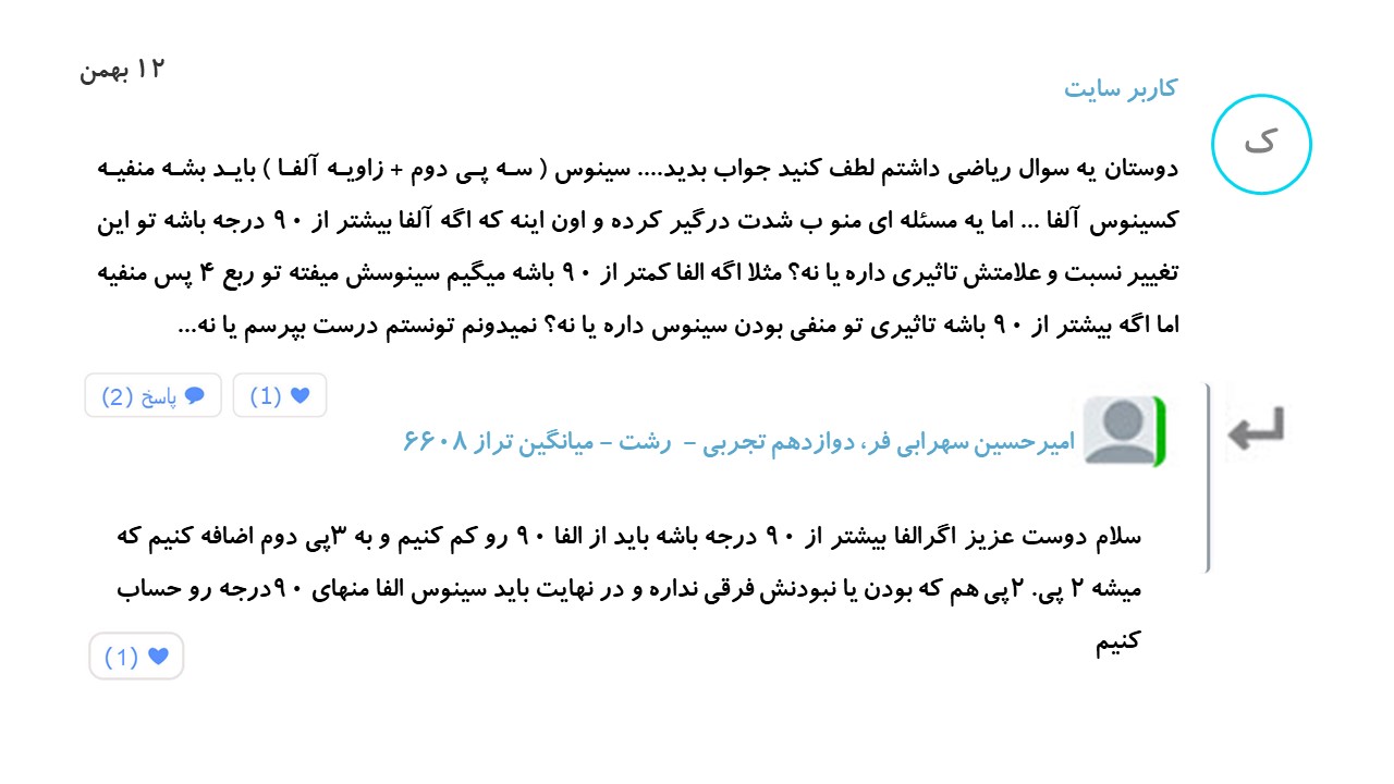 هر شب بهترین پرسش و پاسخ های درسی شما در میان کامنت های صفحات مقاطع، بر روی سایت قرار خواهد گرفت.