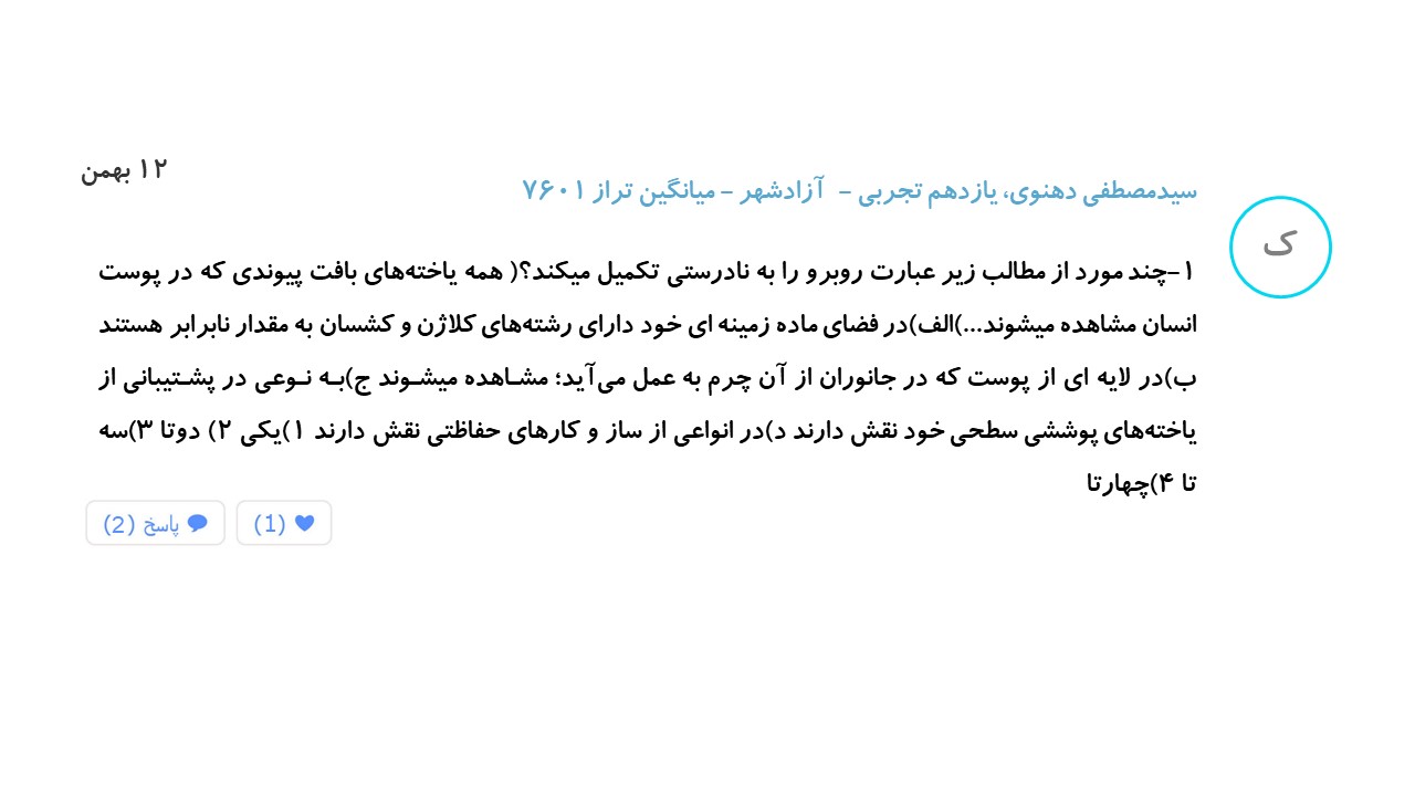 کامنتهای درسی منتخب (چهارشنبه 10 بهمن)
