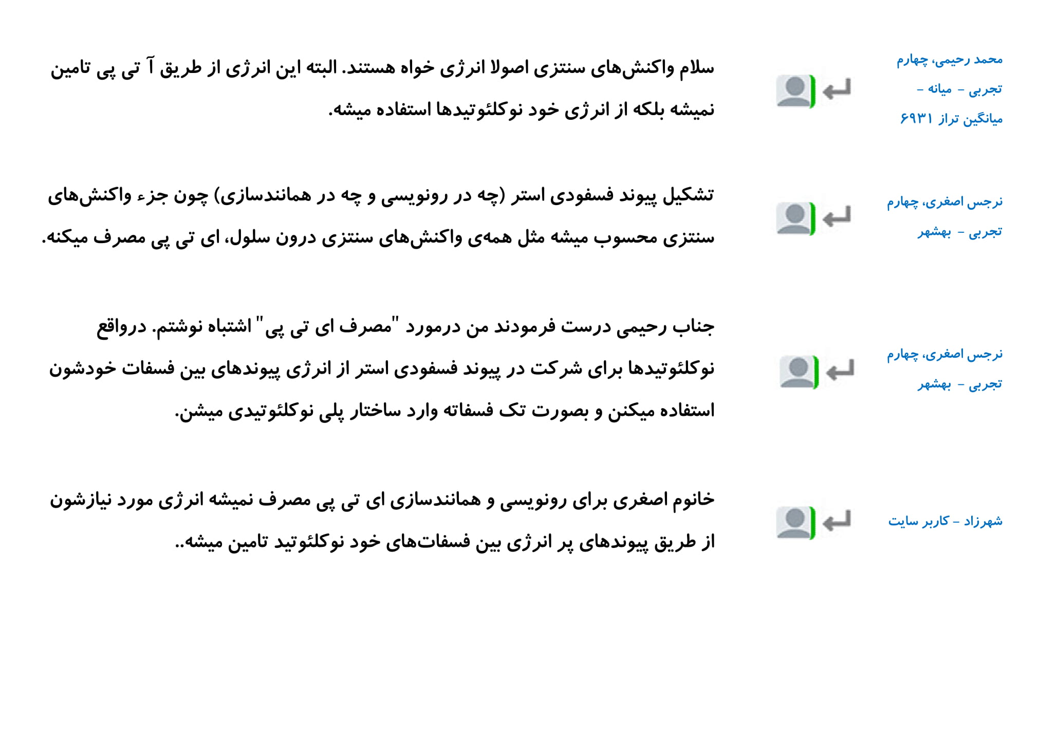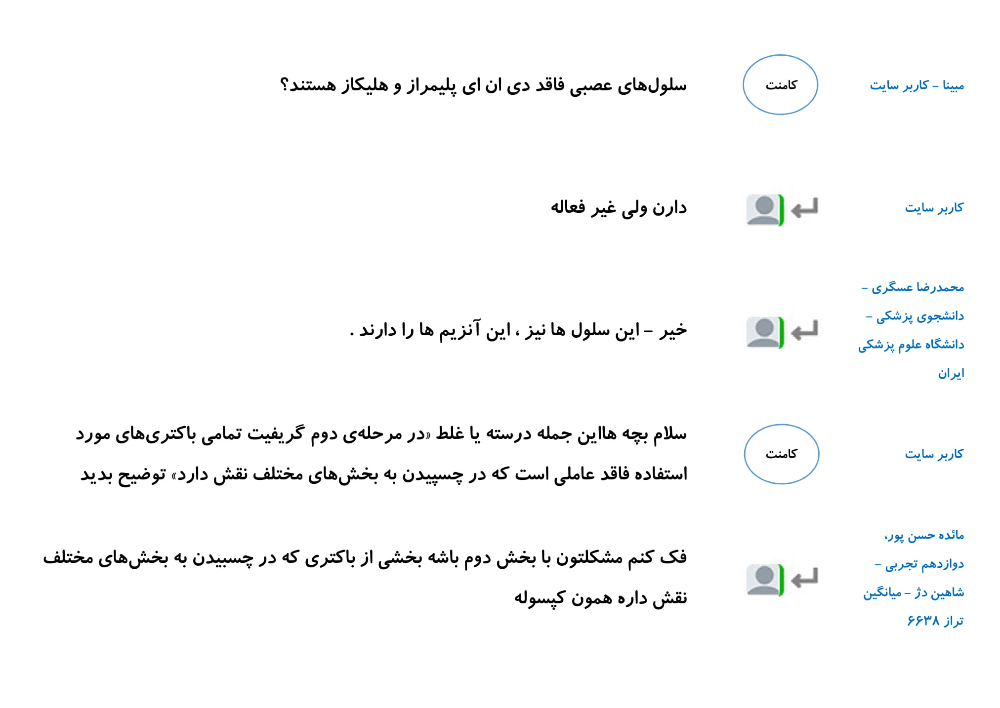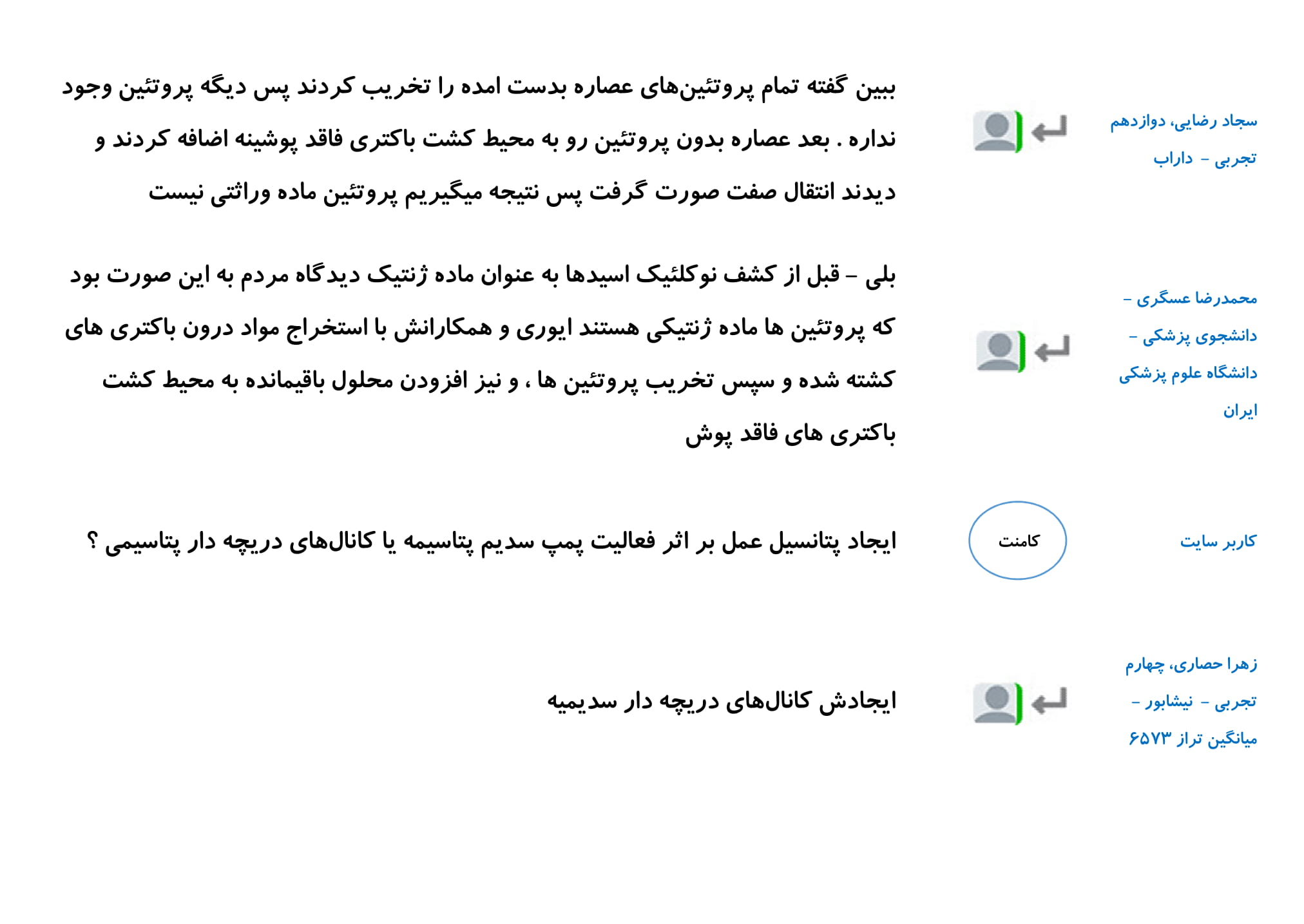 در این مطلب مجموعه پرسش و پاسخ های شما دانش آموزان در رابطه با فصل اول زیست دوازدهم را گردآوری کرده ایم. امیدواریم خواندن این کامنت ها در درک بهتر این فصل به شما کمک کند.