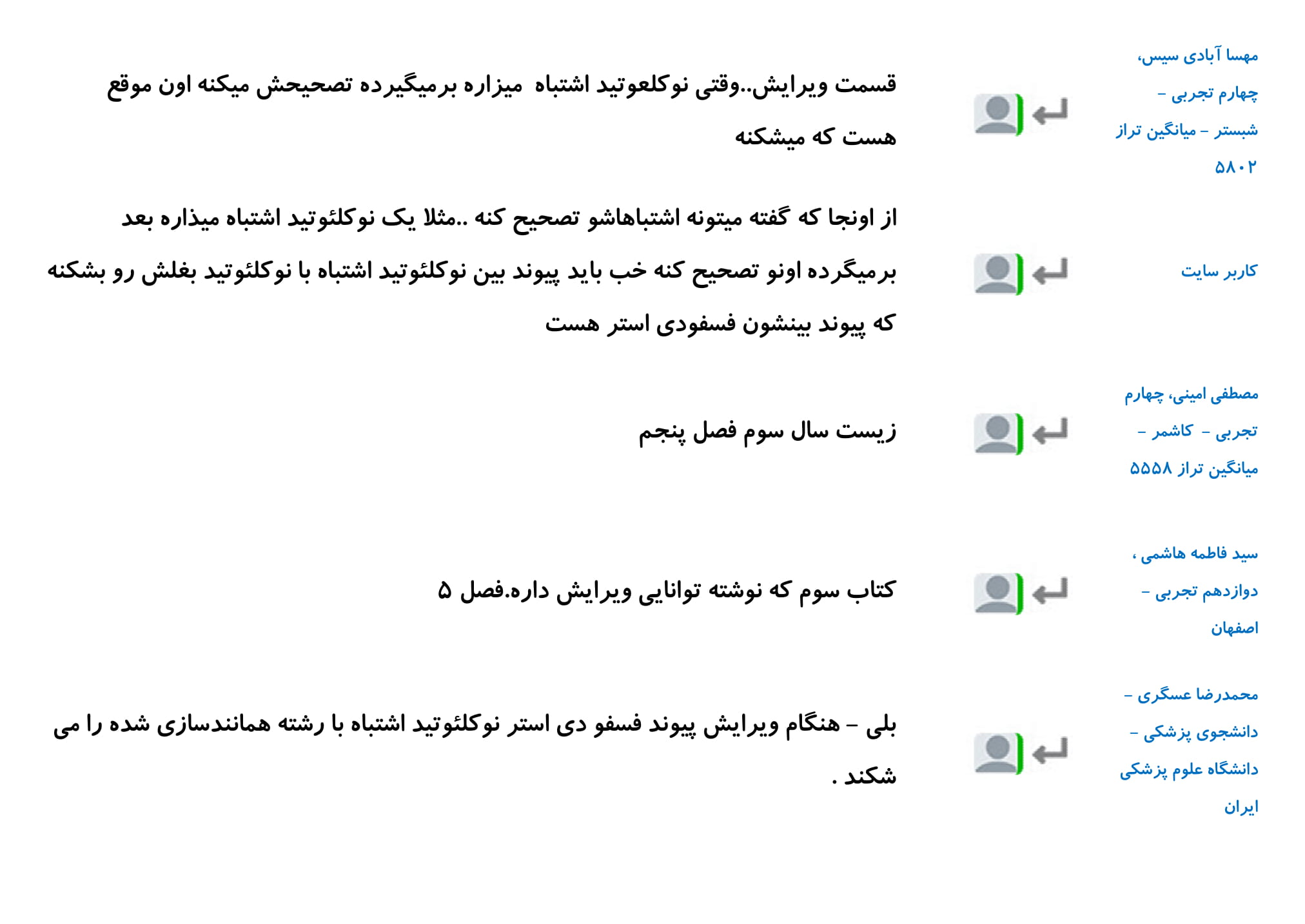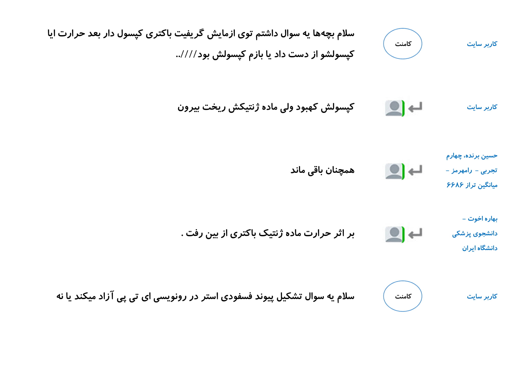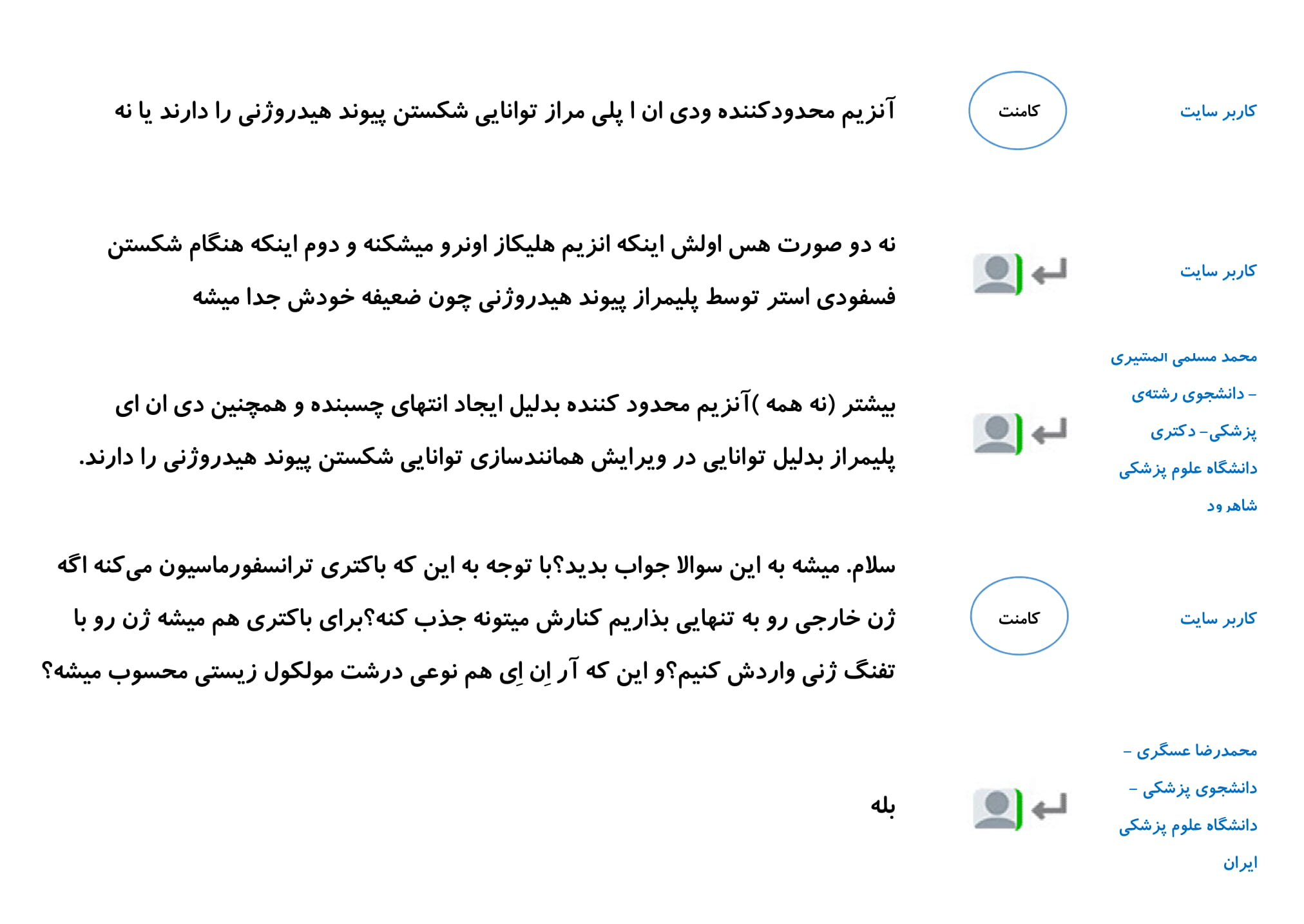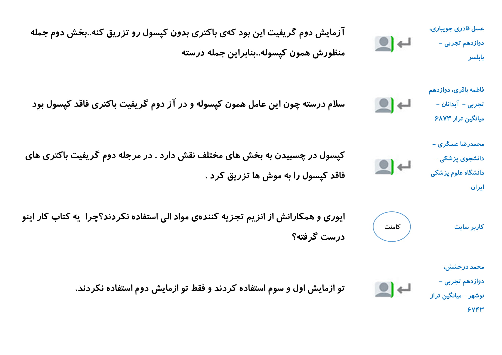 در این مطلب مجموعه پرسش و پاسخ های شما دانش آموزان در رابطه با فصل اول زیست دوازدهم را گردآوری کرده ایم. امیدواریم خواندن این کامنت ها در درک بهتر این فصل به شما کمک کند.