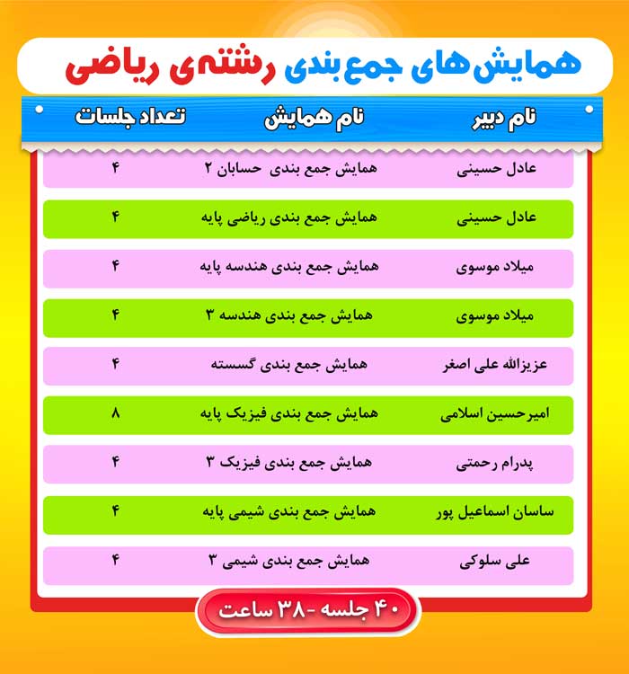 همایش های جمع بندی ریاضی شامل40 جلسه 38ساعت ،