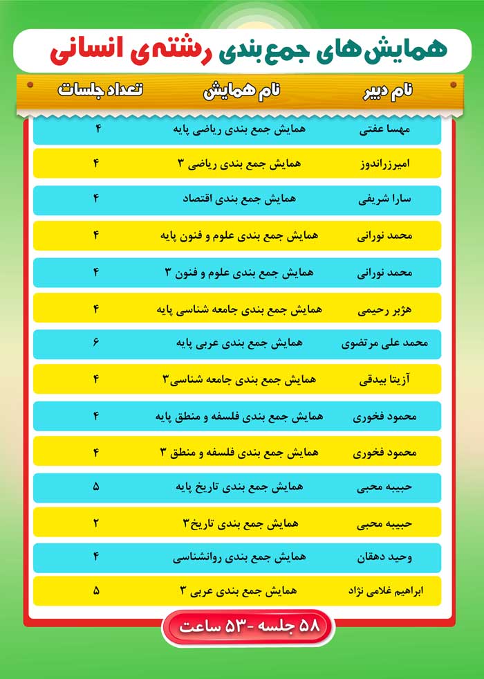 همایش های جمع بندی انسانی شامل 58 جلسه 53 ساعت ،
