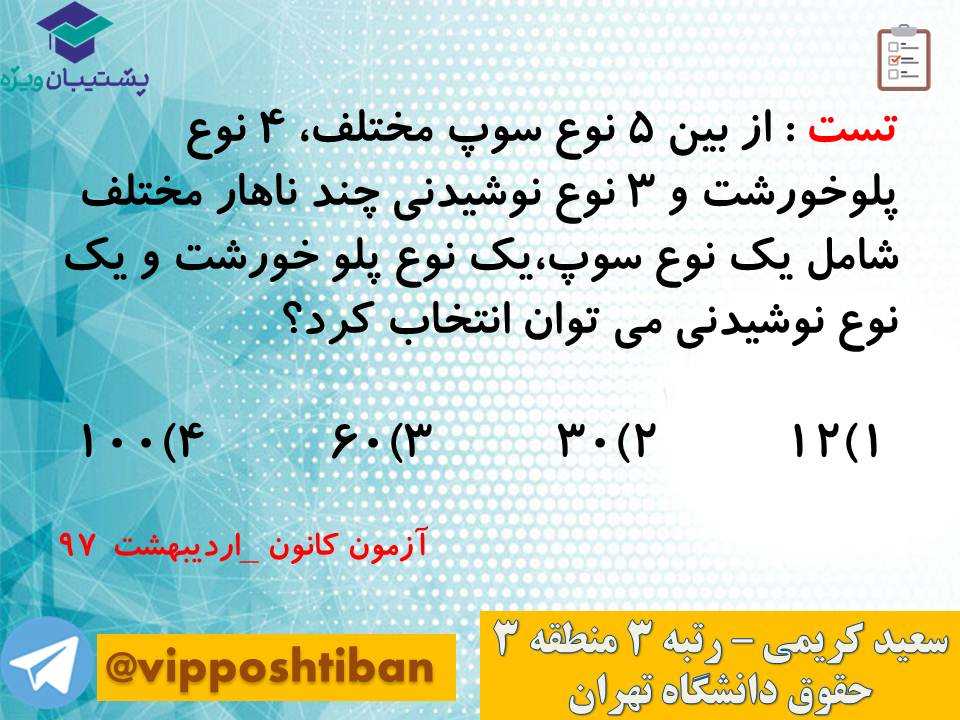 در اسلاید های زیر نکات و تست های کامل و مهمی از مبحث شمارش کتاب ریاضی و آمار دوازدهم انسانی قرار گرفته است.