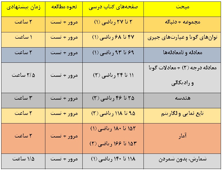 * دانش آموزان عزیز تستهایی که قبلاً زده اید جهت مرور آنها 90 ثانیه زمان بگذارید.