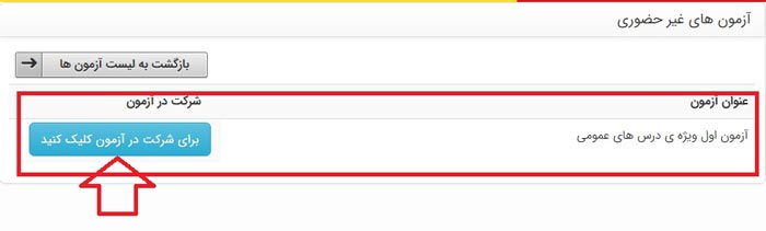 4) در صفحه ی جدید گزینهی "برای شرکت در آزمون کلیک کنید" را انتخاب کنید.