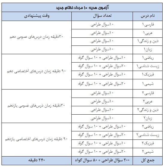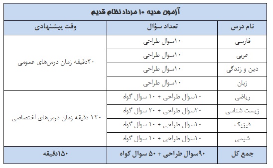 آزمون هدیه 10 مرداد برای هر دو گروه نظام جدید و نظام قدیم تجربی (کنکوری های 1399) برگزار می شود.
