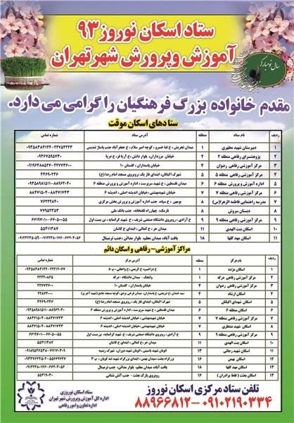 با هماهنگی به عمل آمده فی ما بین آموزش و پرورش شهر تهران و اداره خدمات مخابراتی شرکت مخابرات استان تهران، فرهنگیان کشور برای دریافت تلفن های ستاد اسکان فرهنگیان شهر تهران از طریق تماس با تلفن 118 در شهر تهران و 02133333333 در سراسر کشور می توانند تلفن های مراکز اسکان فرهنگیان پایتخت را دریافت و در خصوص اسکان و رزرو فضاهای رفاهی اقدام کنند.