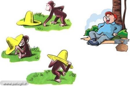 مرد کلاهفروش خيلي تعجّب کرد، ولي مدّتي گذشت و ميمونها نيز کار پيرمرد را تقليد کردند و کلاه را از سرشان به طرف زمين پرتاب کردند.