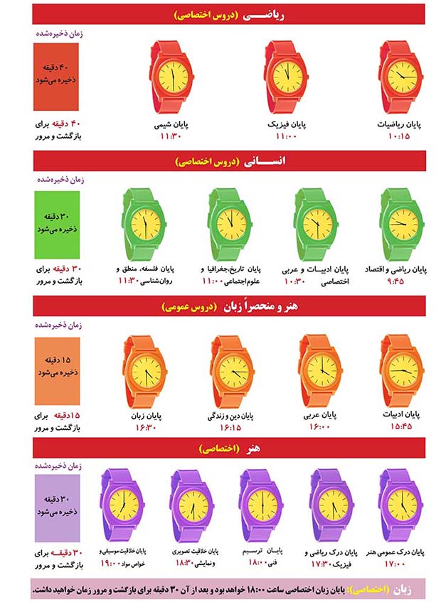 زمانهای پایانی را برای هر درس در بالای صفحهی آزمون بنویسید.