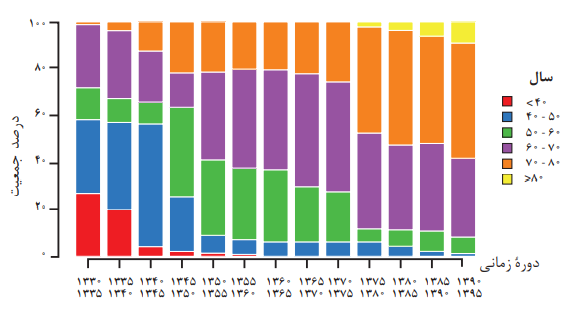 1- با گذشت زمان امید به زندگی درجهان افزایش یافته است؛ یا به عبارت دیگر با گذشت زمان درصد جمعیت جهان که شاخصامید به زندگی بالاتری دارند، افزایش یافته است.
