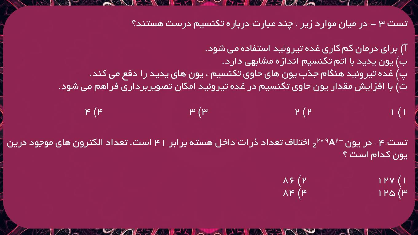 آزمونک زیر، آزمونک شیمی برای آمادگی آزمون 23 مهر و تهیه شده توسط آقای سروش عبادی، دانشجوی پزشکی ایران است. فیلم آموزشی حل سوالات در قسمت پایین مطلب پیوست شده است. بعد از فکر بر روی سوالات، در صورتی که موفق به حل آنها شدید و یا موفق به حل نشدید، فیلم حل سوالات رو نگاه کنید.
