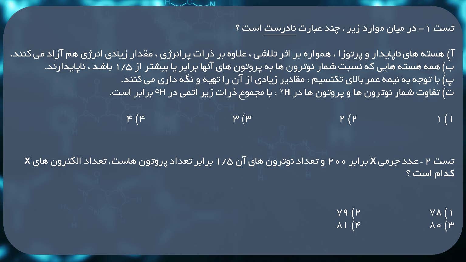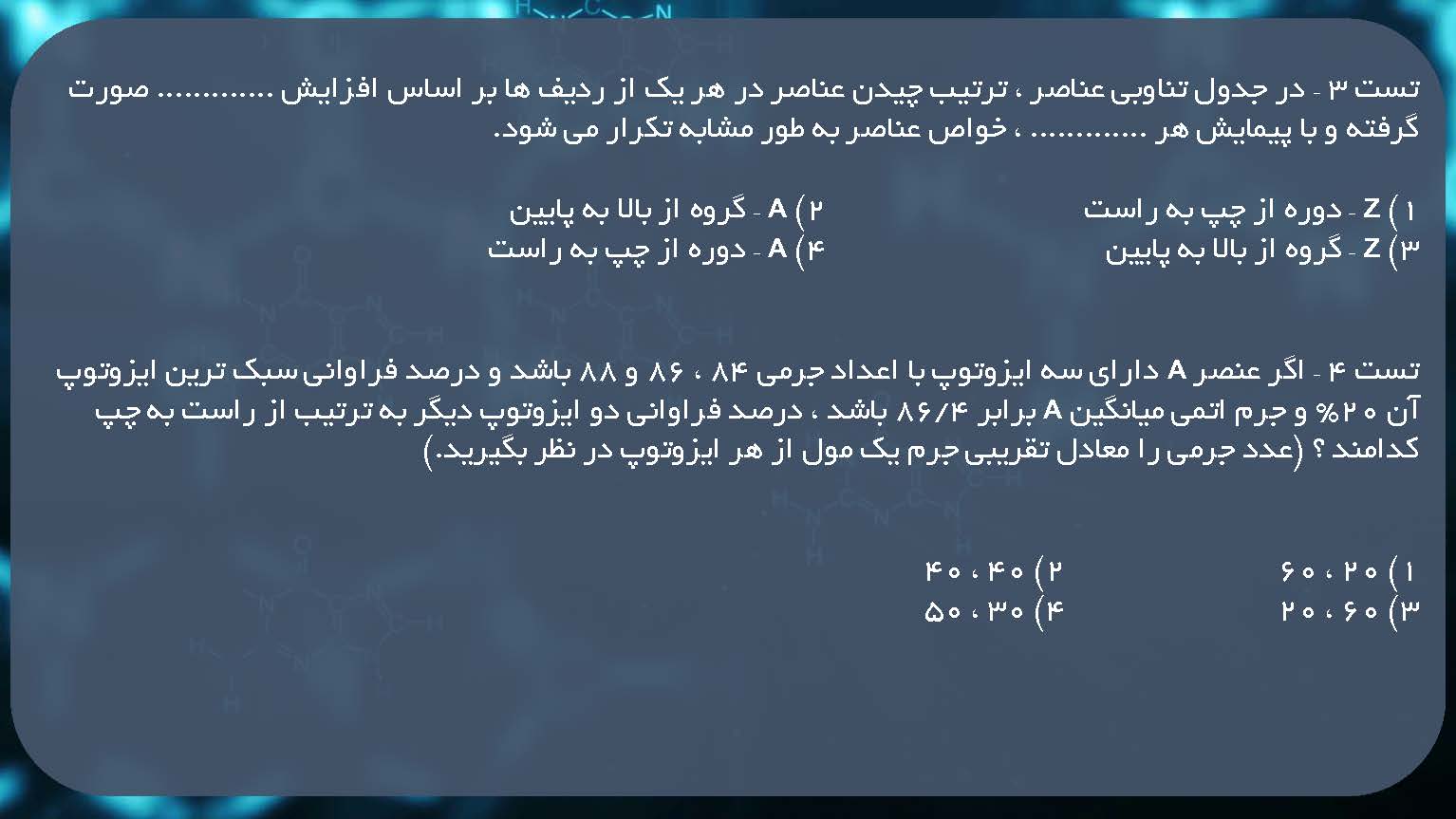 آزمونک زیر، آزمونک شیمی برای آمادگی آزمون 7 آبان و تهیه شده توسط آقای سروش عبادی، دانشجوی پزشکی ایران است. فیلم آموزشی حل سوالات در قسمت پایین مطلب پیوست شده است. بعد از فکر بر روی سوالات، در صورتی که موفق به حل آنها شدید و یا موفق به حل نشدید، فیلم حل سوالات رو نگاه کنید.