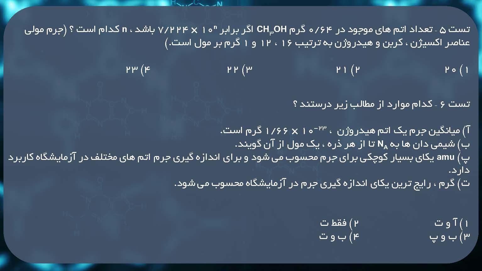 آزمونک زیر، آزمونک شیمی برای آمادگی آزمون 7 آبان و تهیه شده توسط آقای سروش عبادی، دانشجوی پزشکی ایران است. فیلم آموزشی حل سوالات در قسمت پایین مطلب پیوست شده است. بعد از فکر بر روی سوالات، در صورتی که موفق به حل آنها شدید و یا موفق به حل نشدید، فیلم حل سوالات رو نگاه کنید.