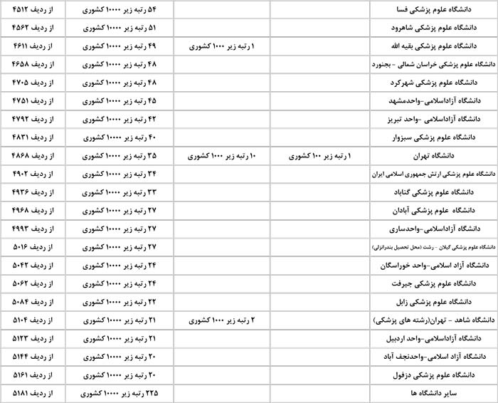 قبولیهای پزشکی کانون در کنکور 1400