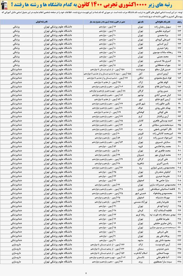 برترهای تجربی 1400 کانون به کدام رشته ها و دانشگاه ها رفتند ؟
