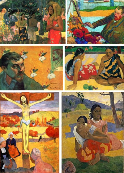 برخی آثار پل گوگن: زنان اهل تاهیتی، مسیح زرد، زن اهل کاراییب، اسب سپید و ...