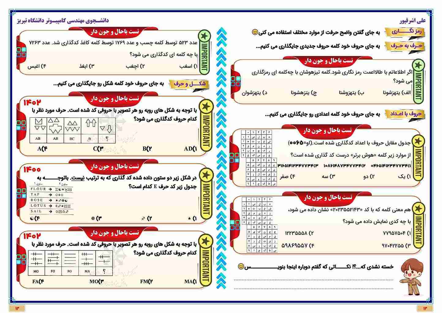 بخش رمز نگاری، بخشی که در سال های 1401،1402 و 1403 هر سه سال مورد سوال سمپاد بوده لطفا با دقت کامل سوالاشو حل کنید...