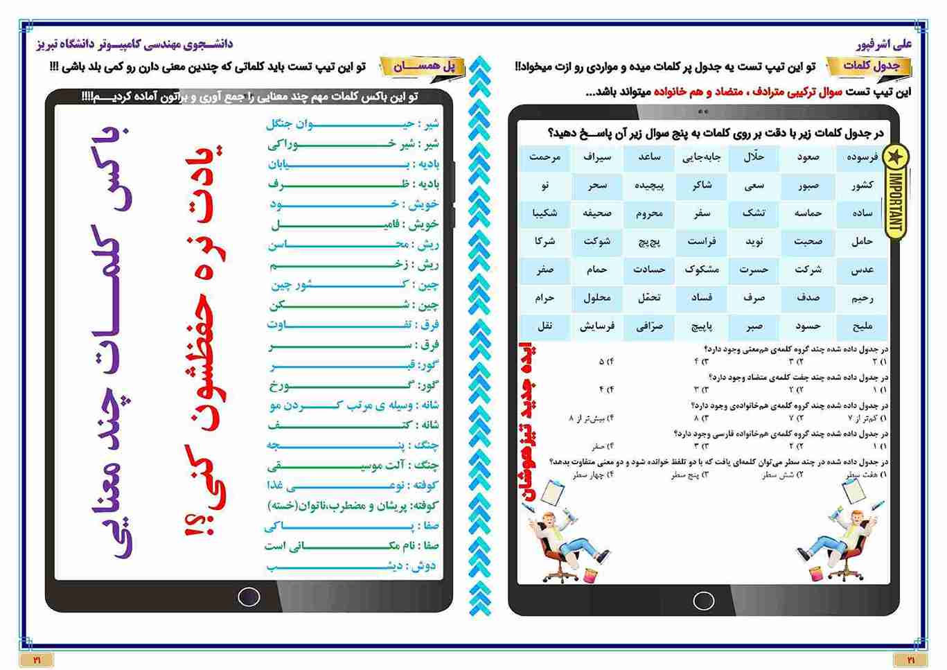 از سه بخش هوش ریاضی - کلامی - تصویری تشکیل شده بریم بخش کلامی رو با تیپ تست های مختلف بررسی کنیم.