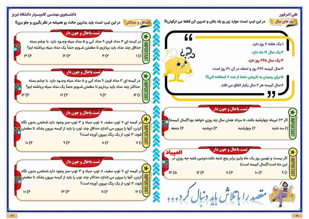 تیپ تست های مختلفی داره که دوباره برای هر کدومش تایم حل سوال نوشتیم...