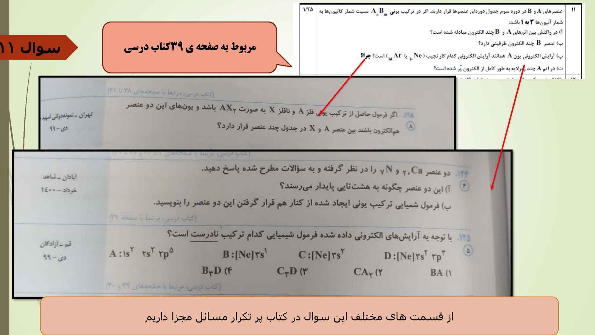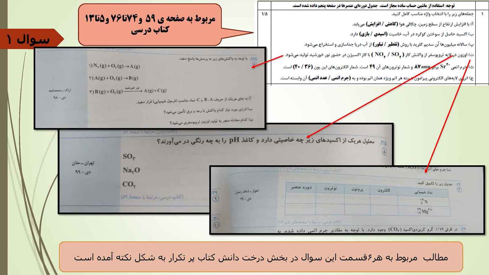 خانم مهناز قزی دبیر شیمی شهر سبزوار در استان خراسان رضوی، سؤالات امتحان شبه نهایی شیمی دهم را با کتاب پرتکرار شیمی دهم انطباق داده است و سؤالات مشابه مفهومی را مشخص کرده است.