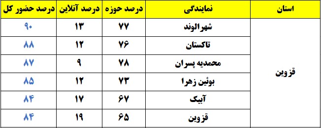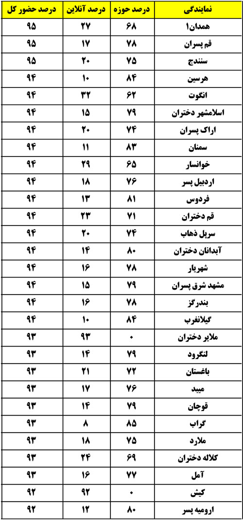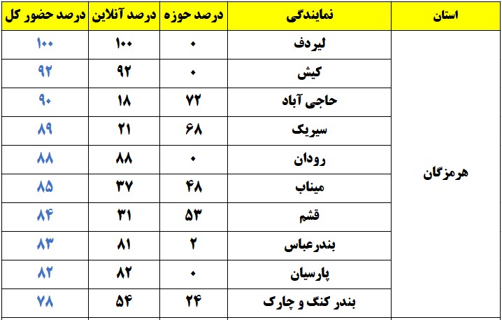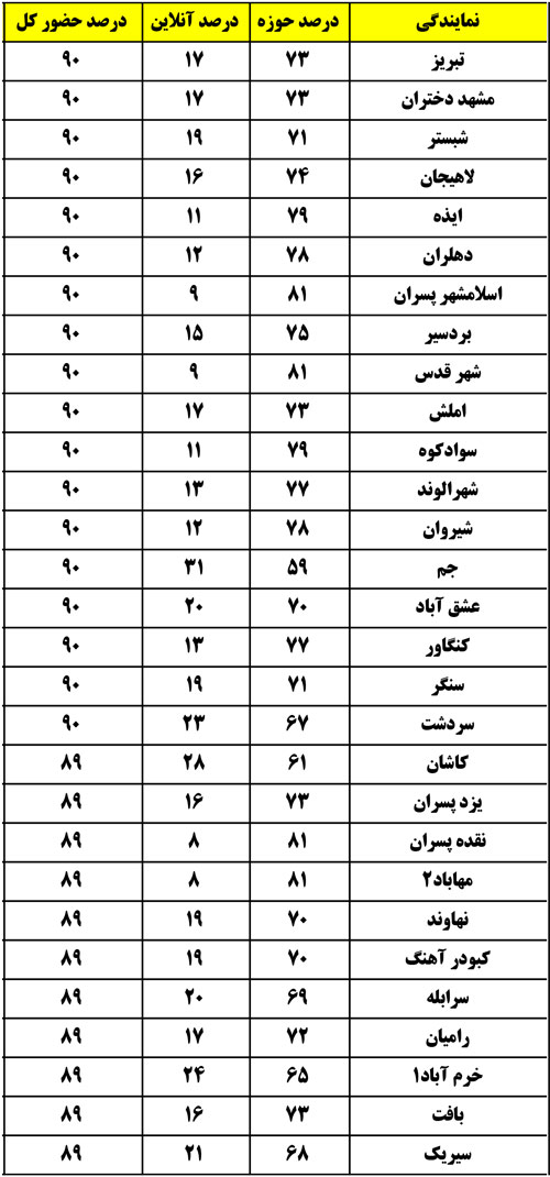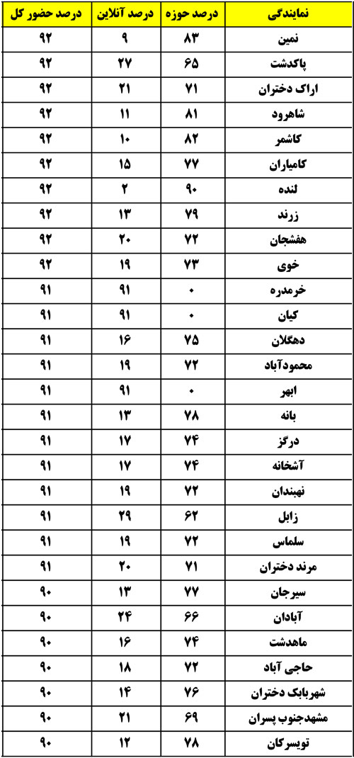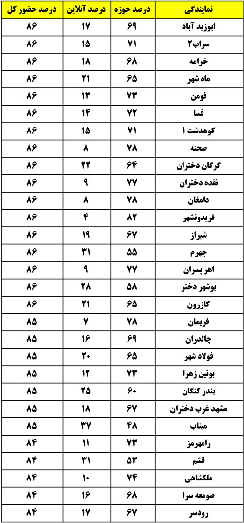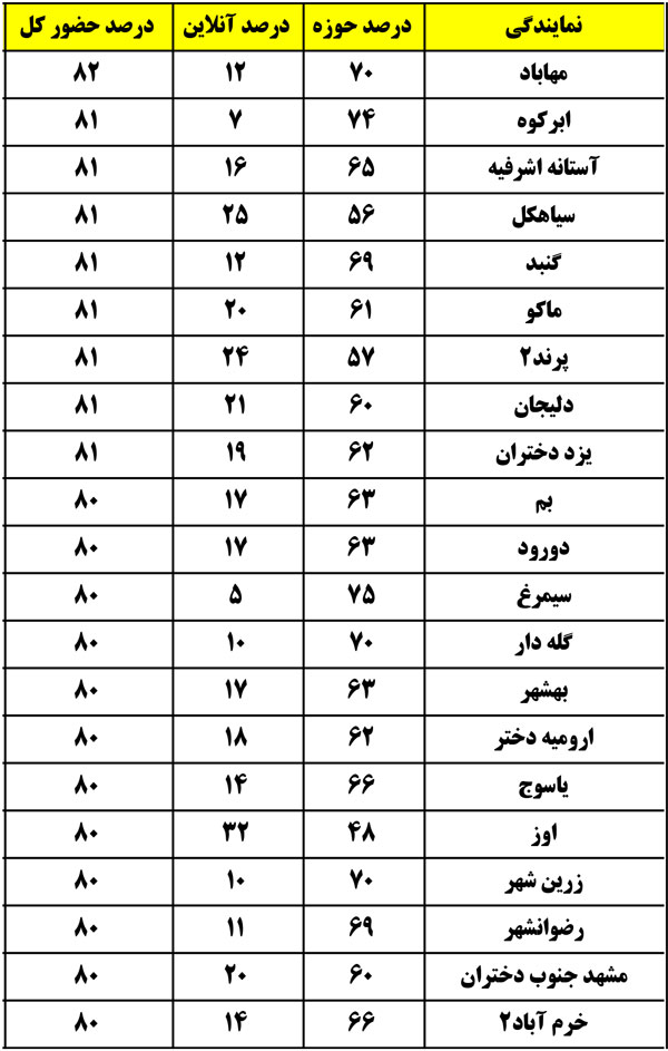 شهرهایی که درصد حضور بالای 80 درصد داشتند