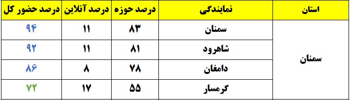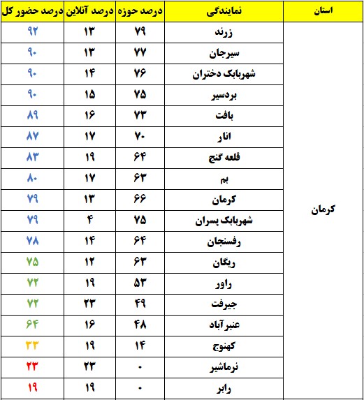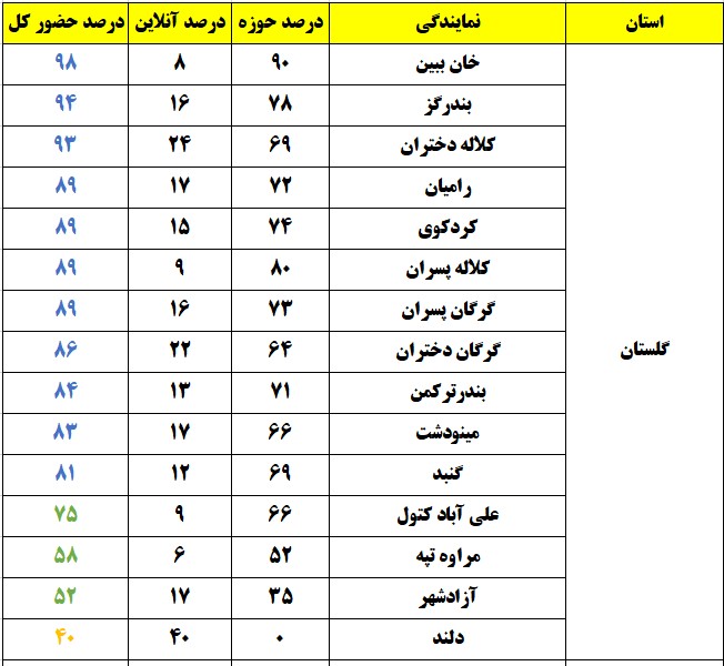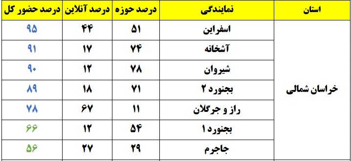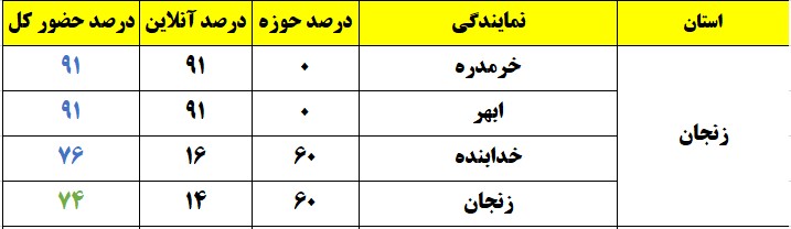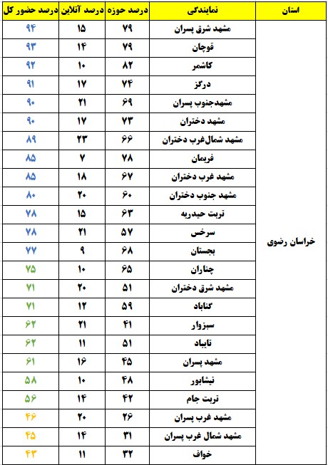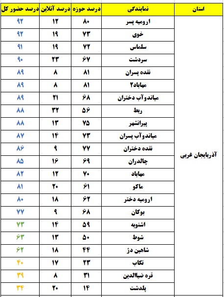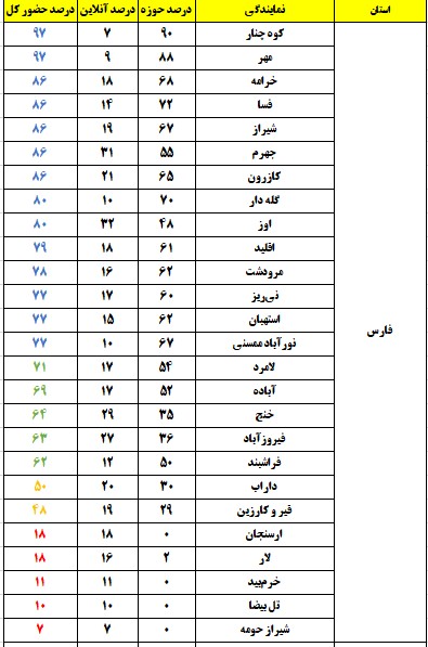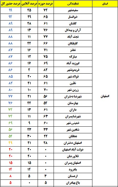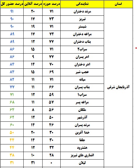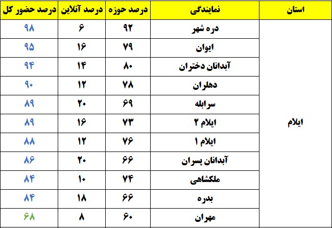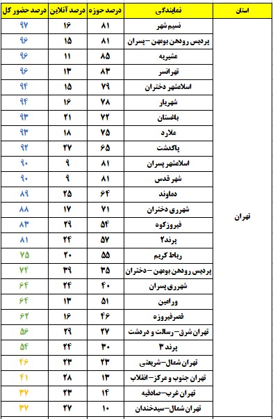 شهرهایی که درصد حضور بالای 80 درصد داشتند