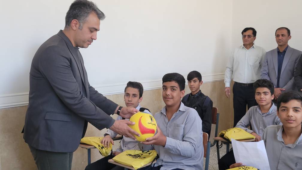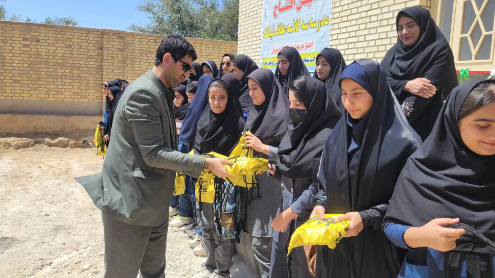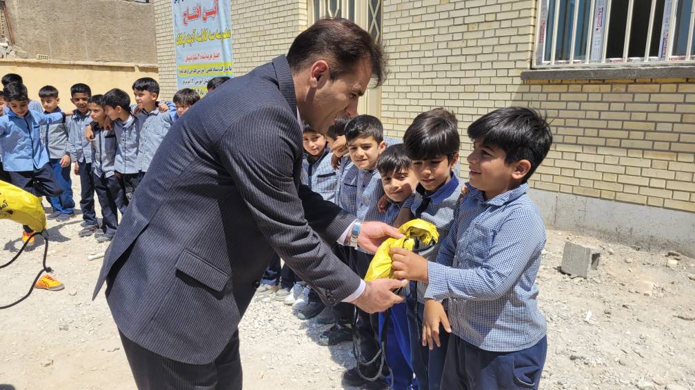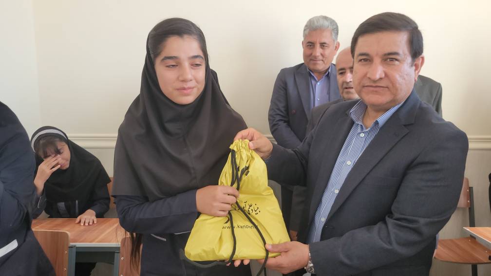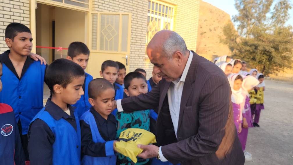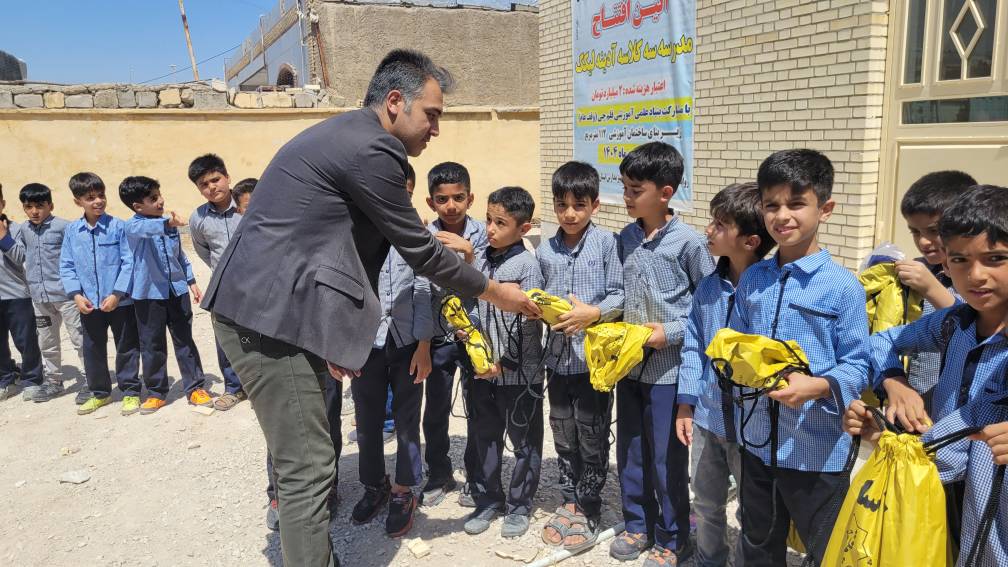 اهدای پکیج لوازمالتحریر توسط صابر فتاحی مسئول پروژههای مدرسهسازی