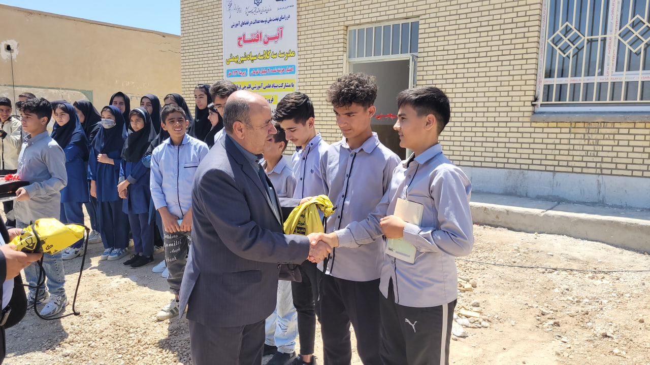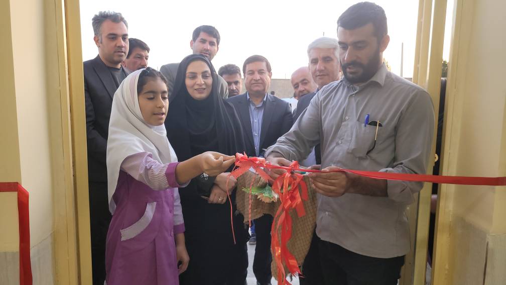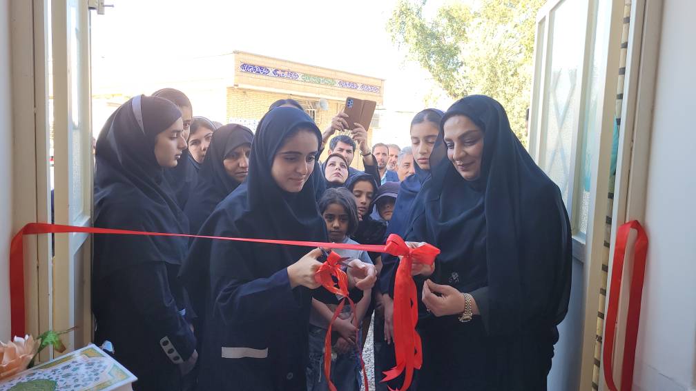 بریدن روبان افتتاح توسط دانشآموز مدرسه