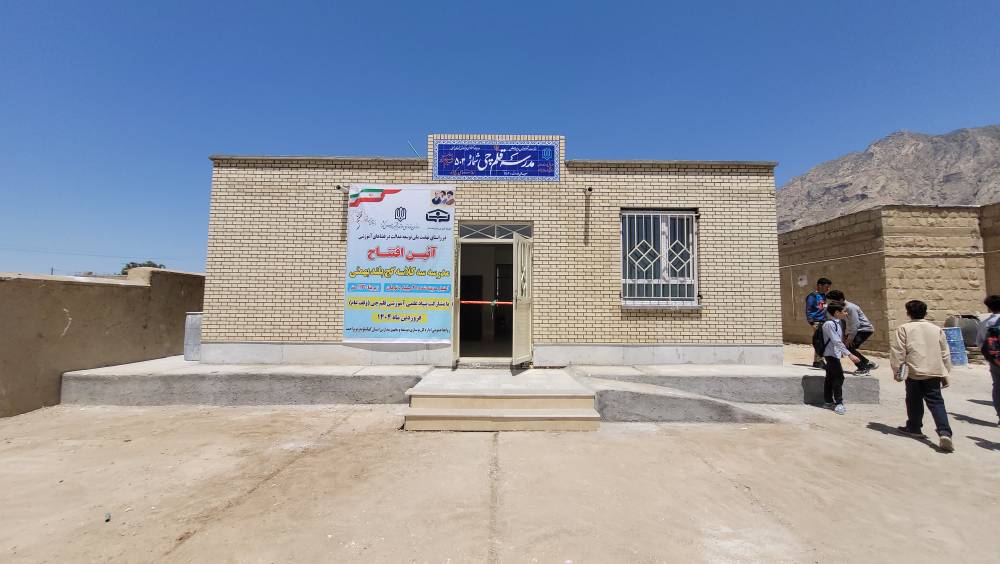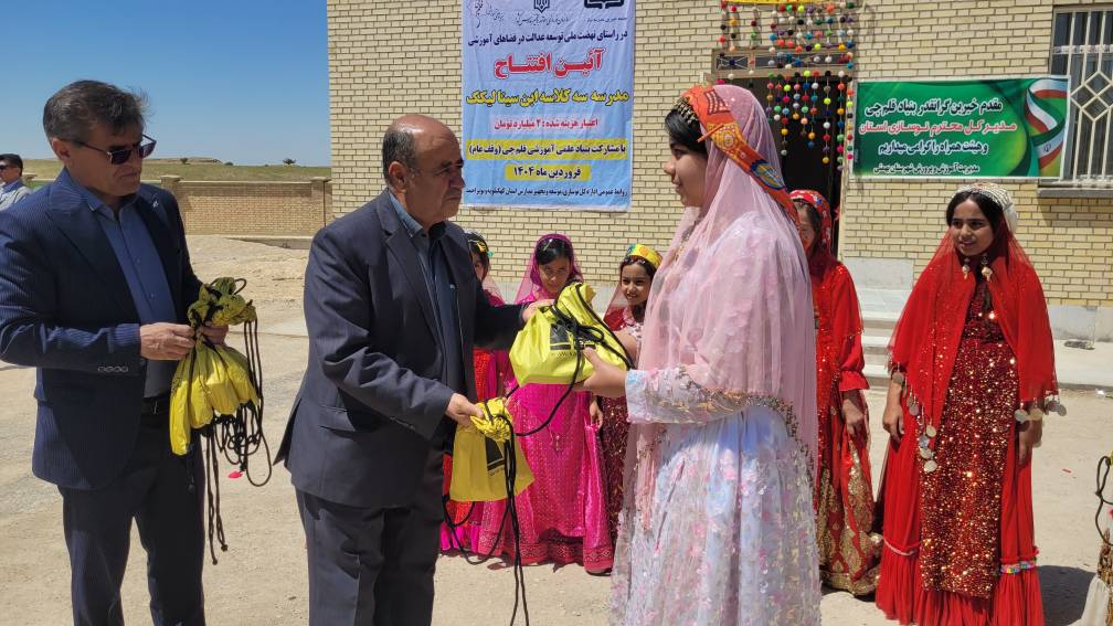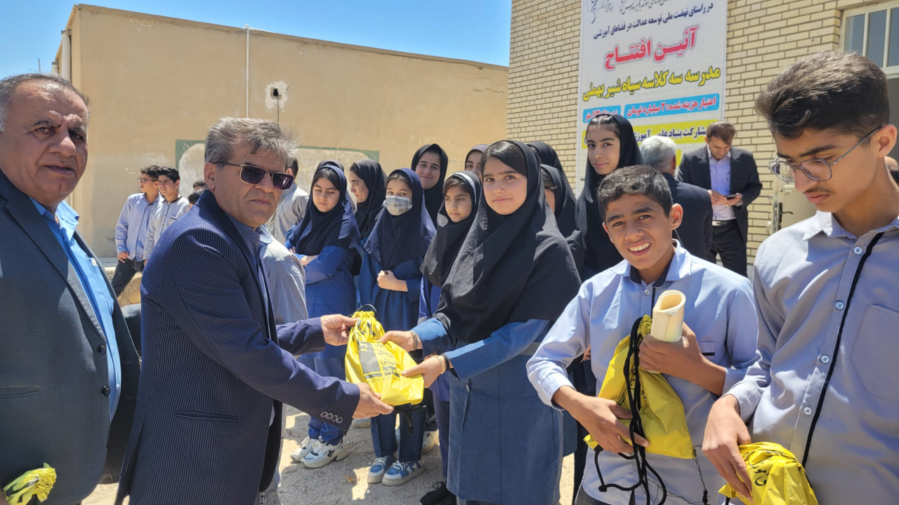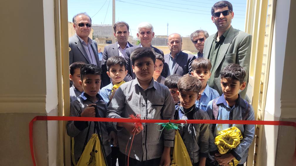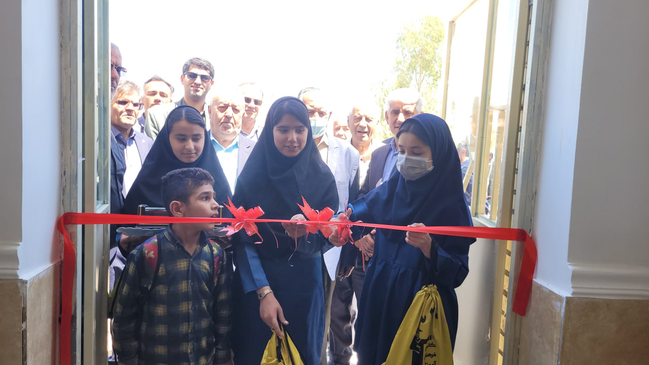 بریدن روبان افتتاح توسط دانشآموزان مدرسه