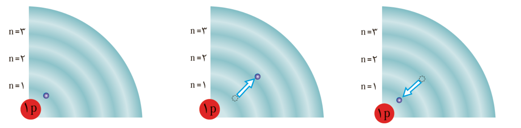 - 💠کوانتومی بودن داد و ستد انرژی، الکترون هنگام انتقال از یک لایه به لایۀ دیگر، انرژی را به صورت پیمانه ای یا بسته های معین، جذب یا نشر می کند.