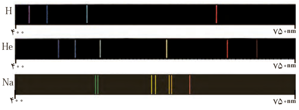 🔅هر عنصر، طیف نشری خطی ویژۀ خود را دارد و مانند اثر انگشت ما، می توان از آن طیف برای شناسایی عنصر استفاده كرد.