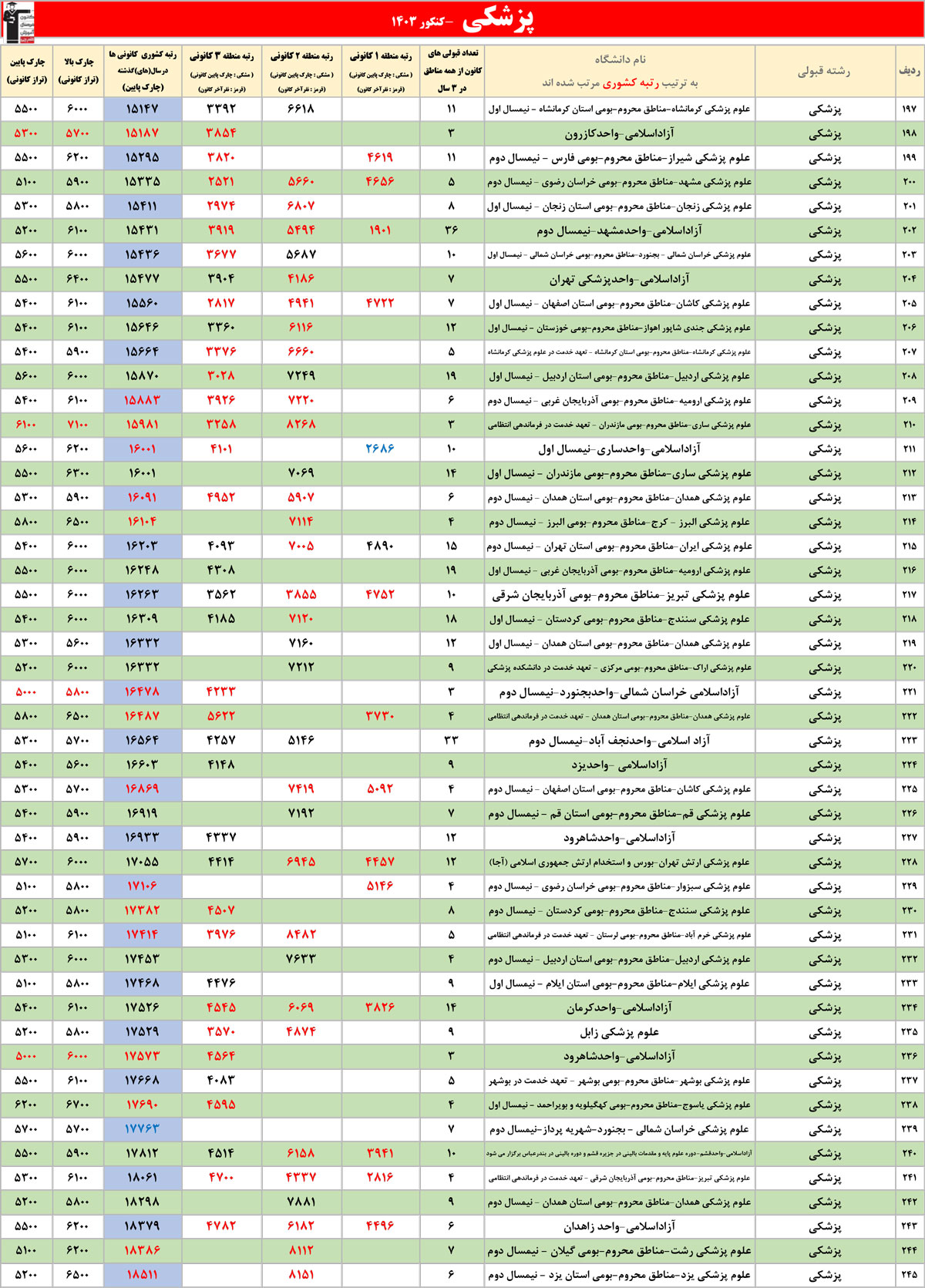 رنگ قزمز: مربوط به قبولی های کمتر از 3 نفر است