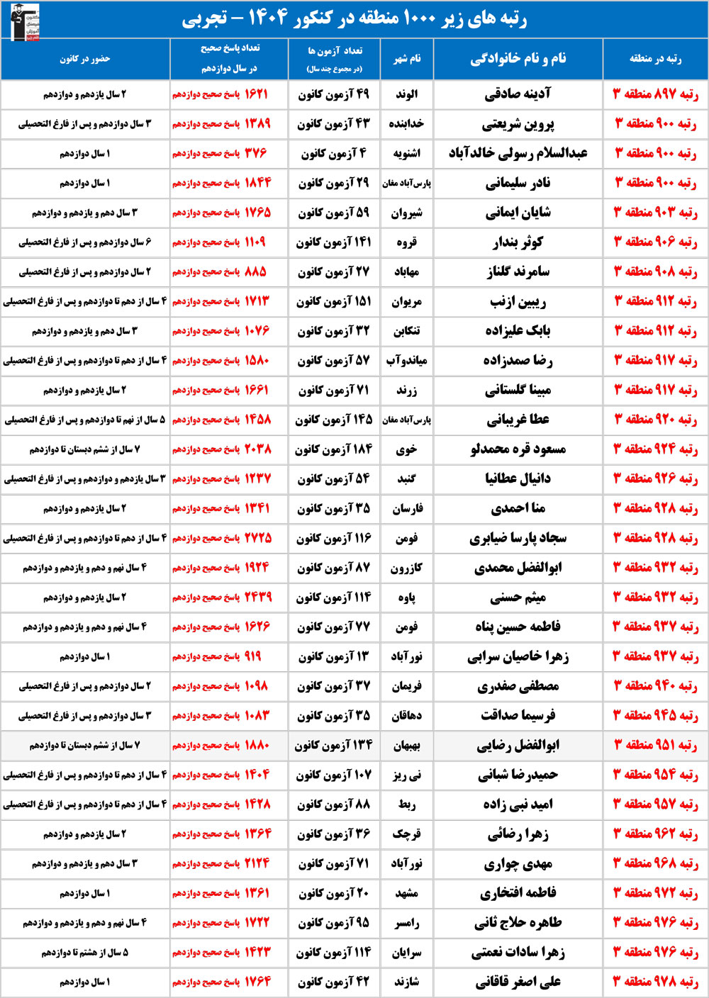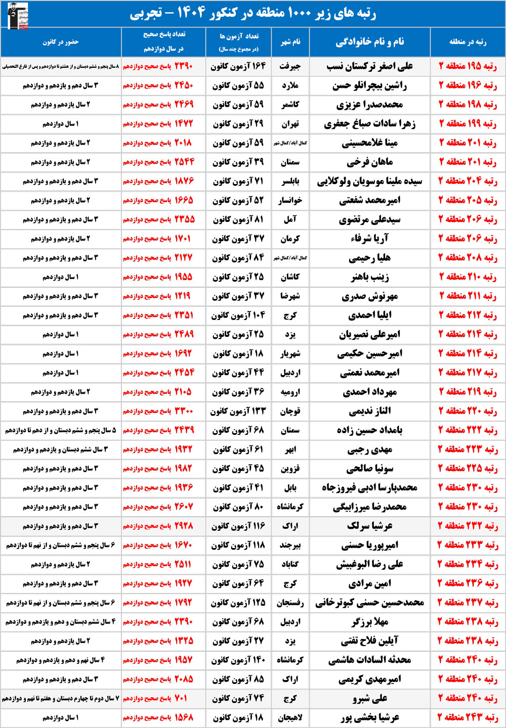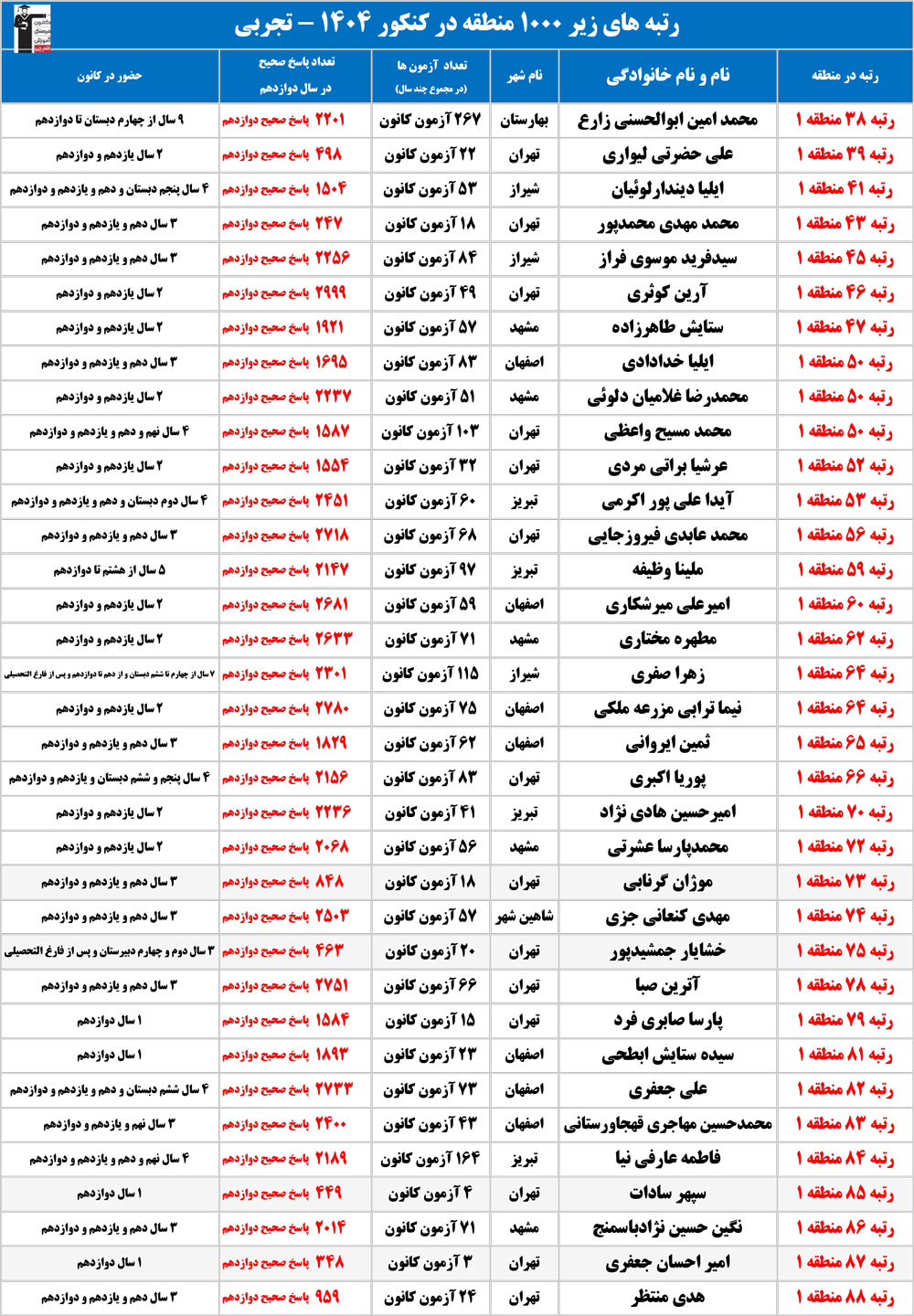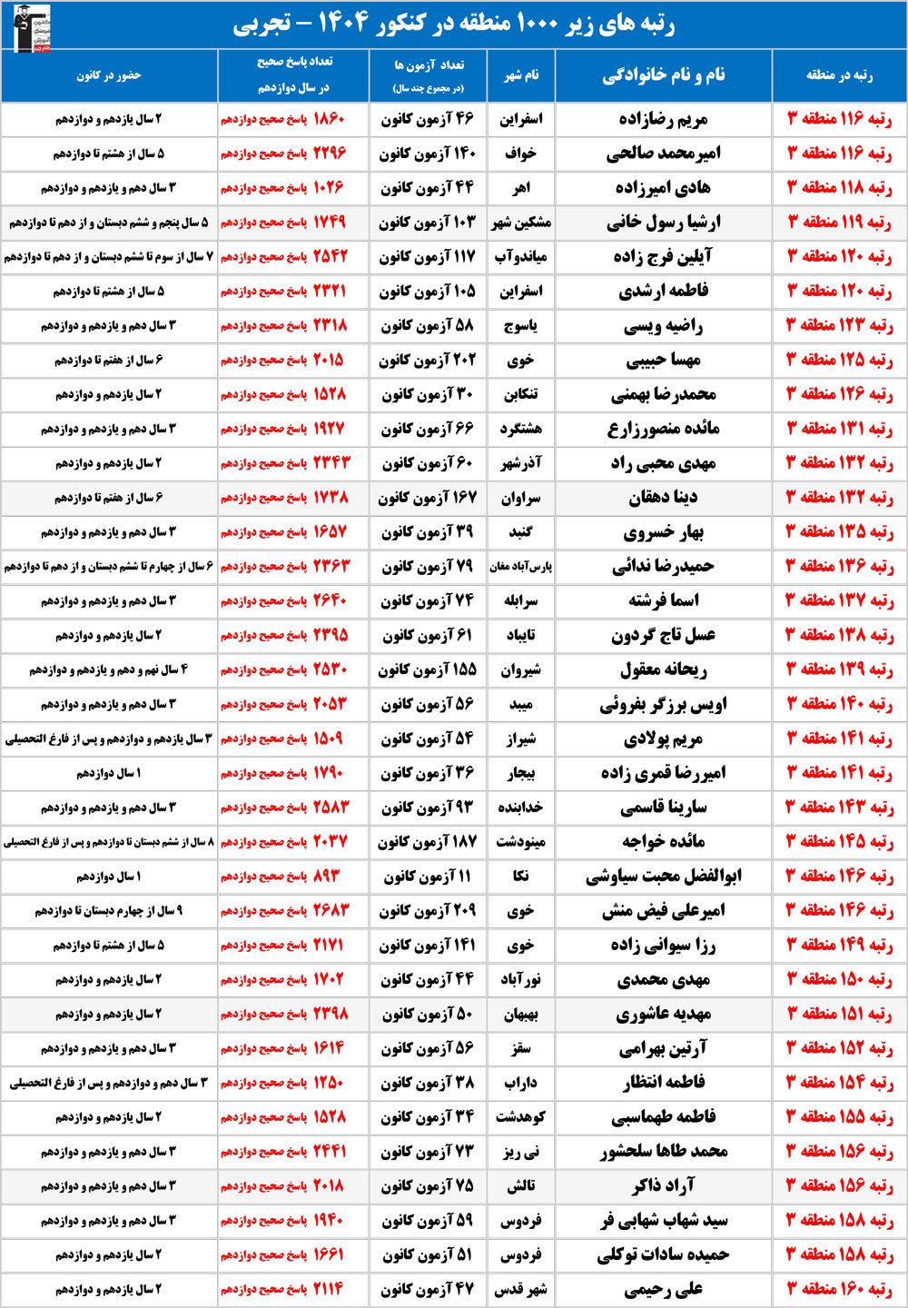 در ادامه با رتبه های زیر 1000 منطقه کانونی در کنکور 1404 در رشته تجربی آشنا شوید.