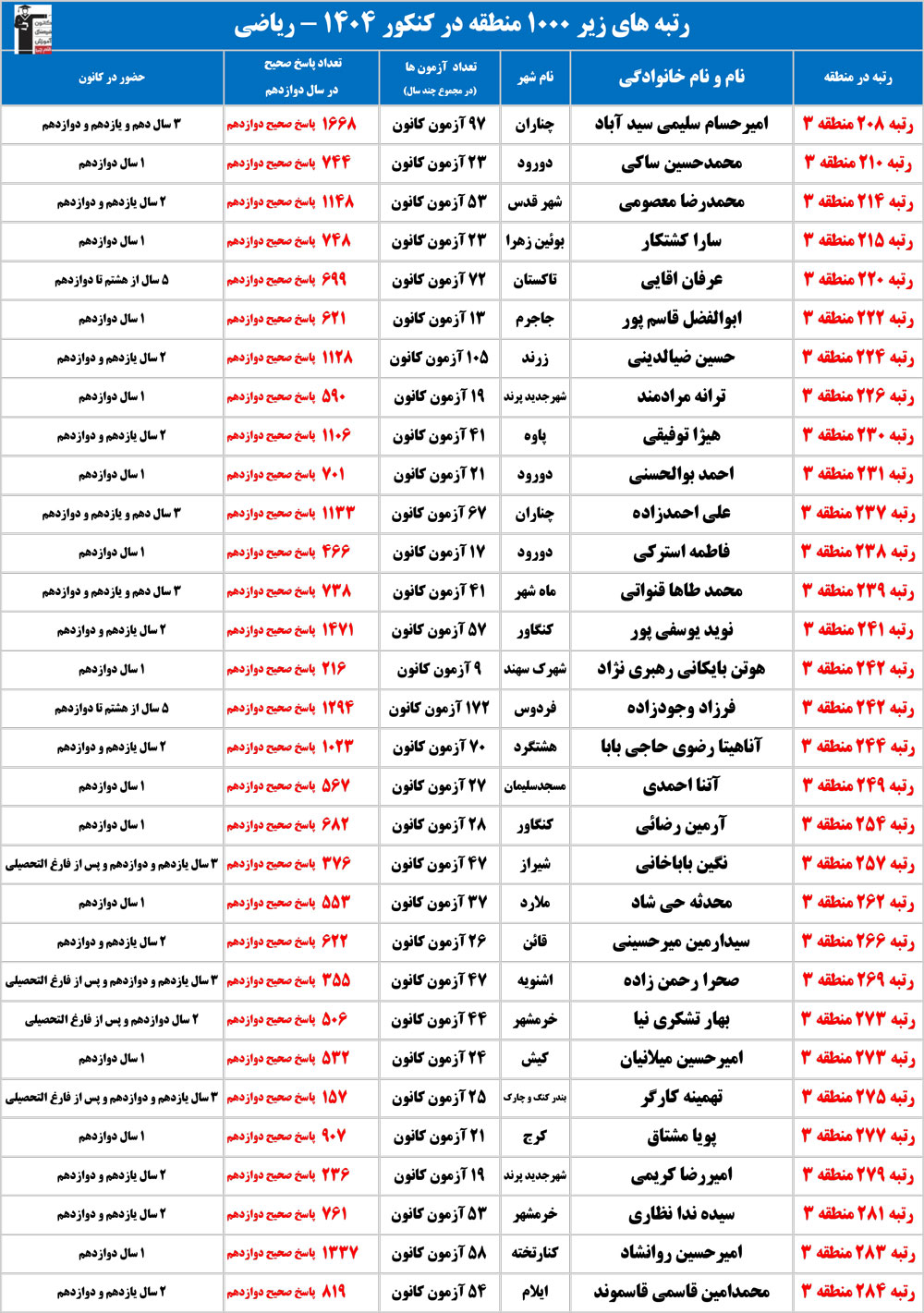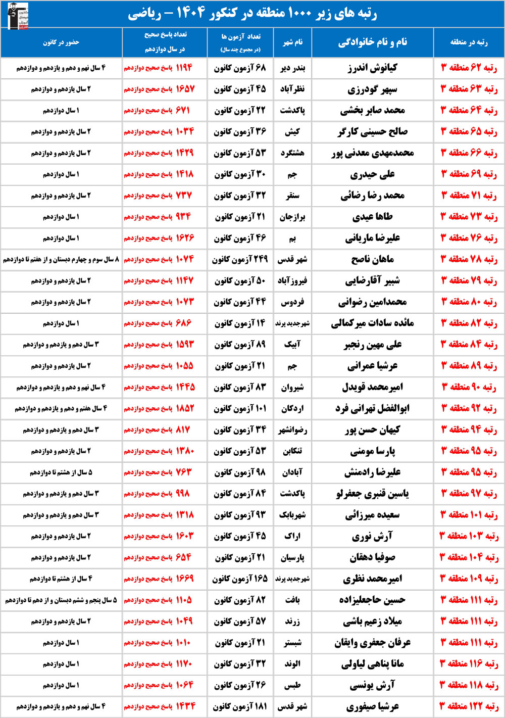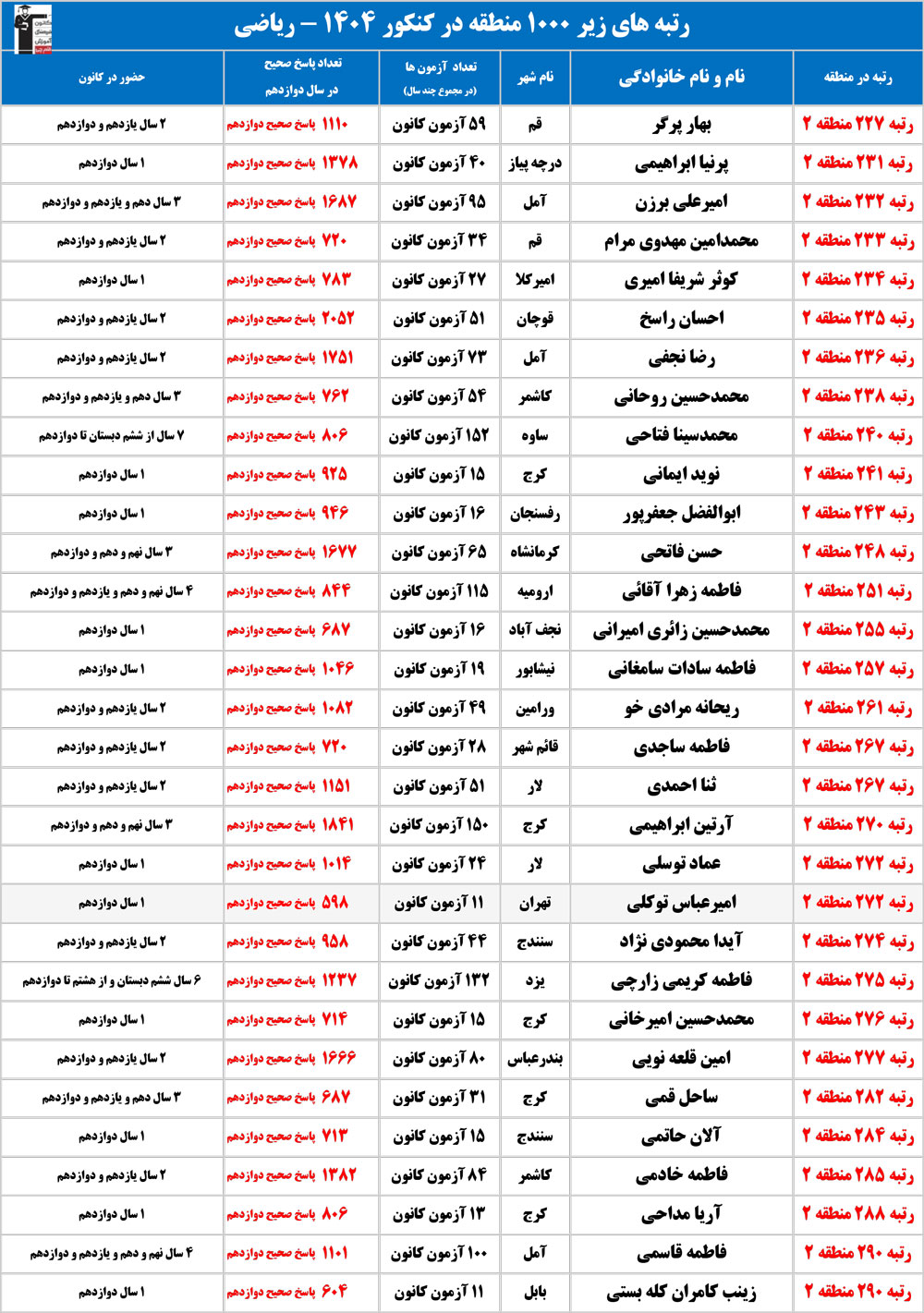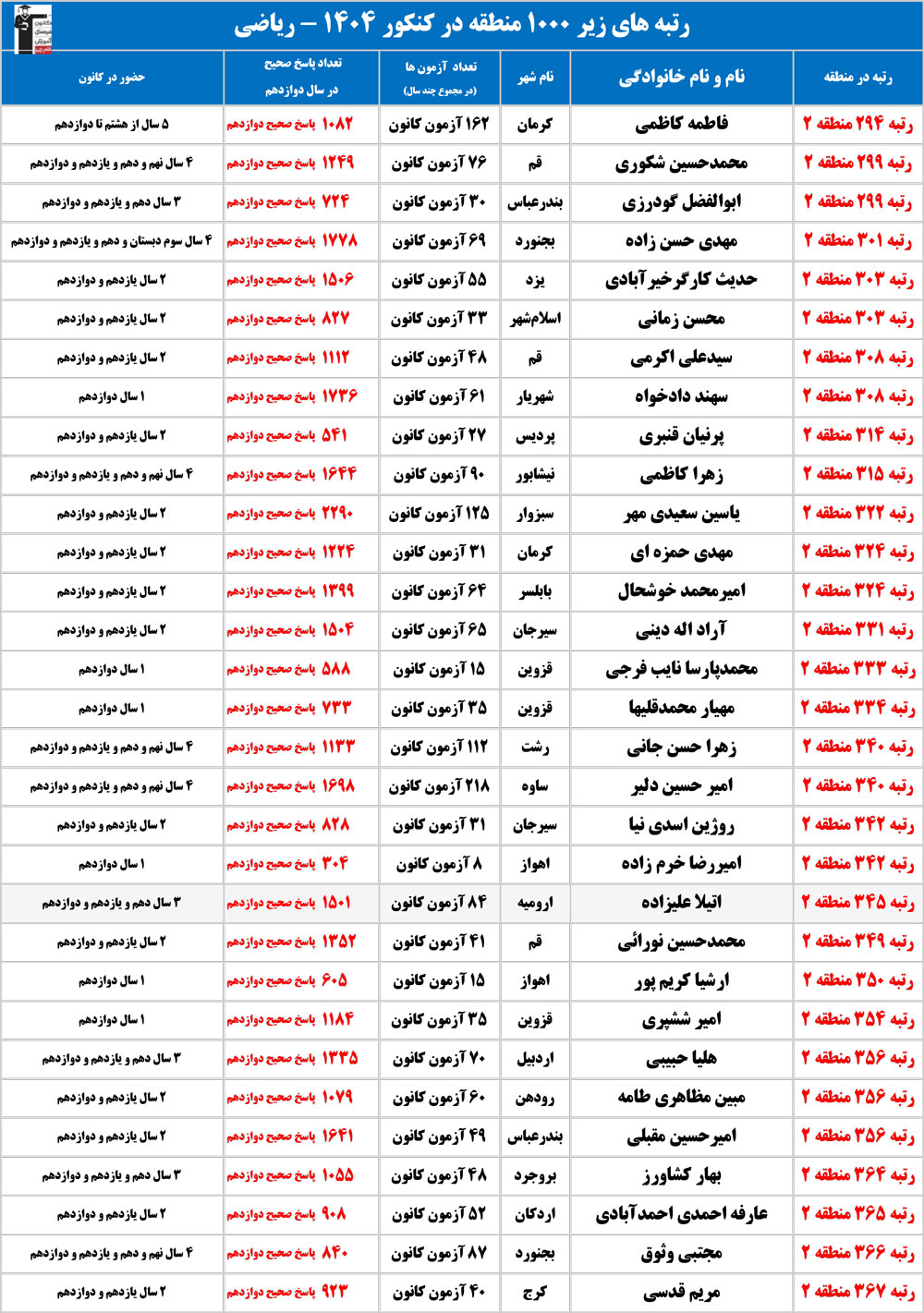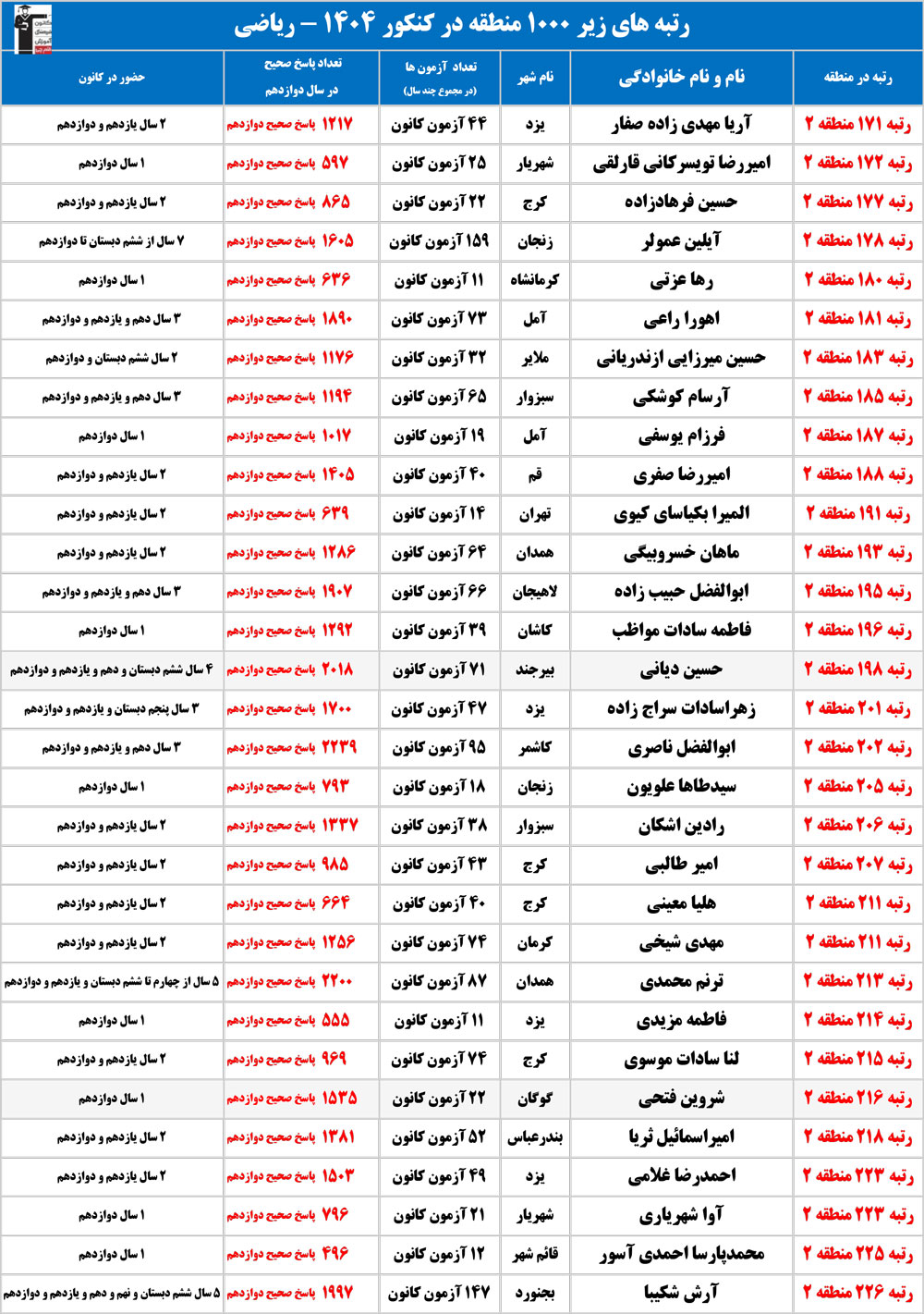 در ادامه با رتبه های زیر 1000 منطقه کانونی در کنکور 1404 در رشته ریاضی آشنا شوید.