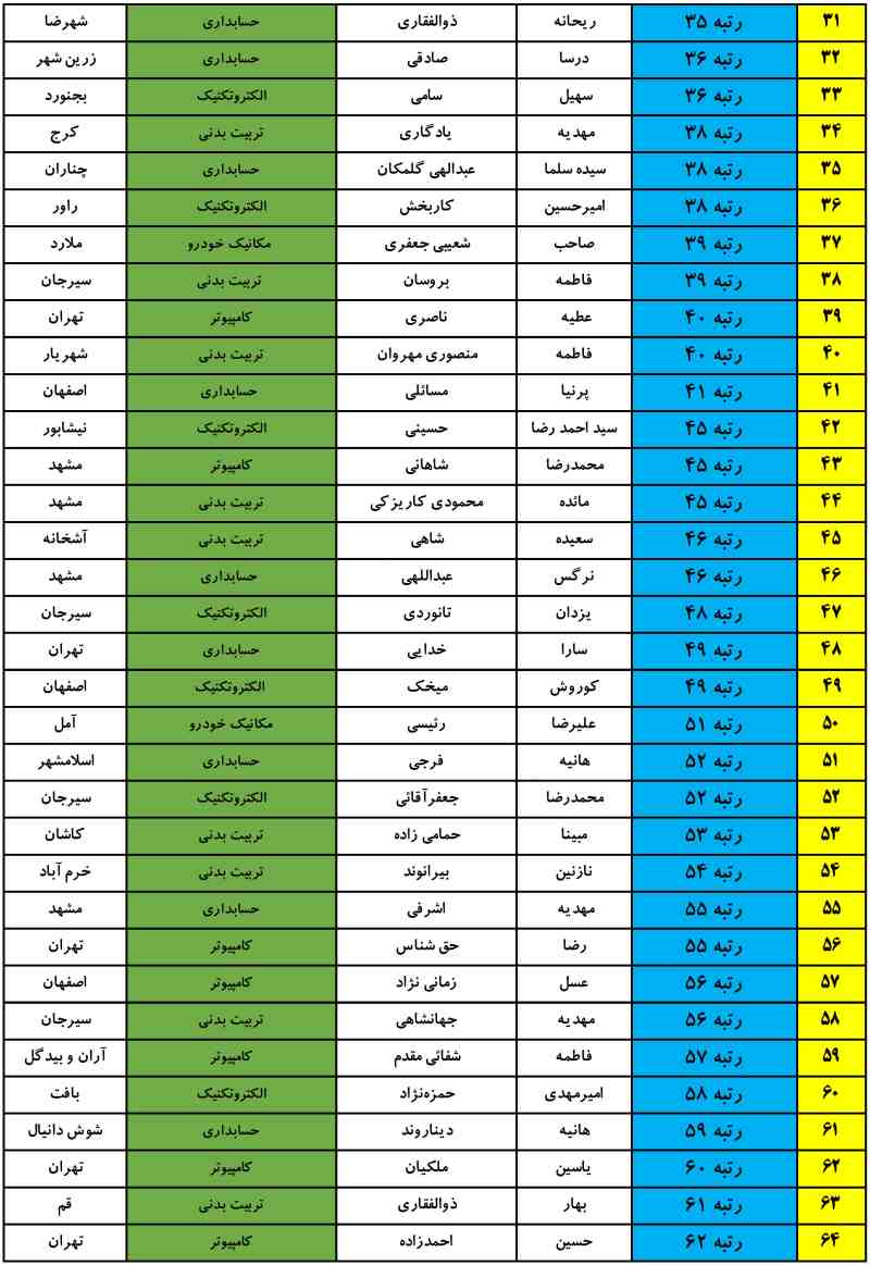 در صورتی که رتبه شما 1 تا 100 می باشد و اسم شما در جدول های زیر نیست، لطفا با تلفن 6463-021 داخلی 1166 و 1136 تماس بگیرید و یا کامنت بگذارید تا با شما تماس گرفته شود.