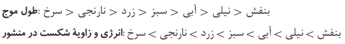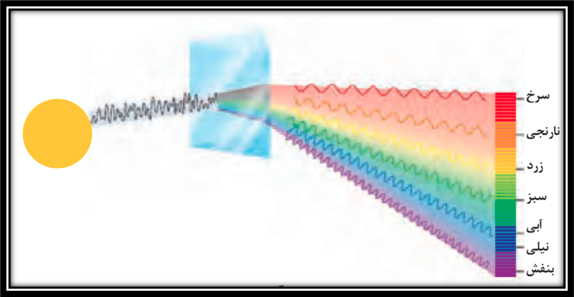 توجه داریم که نور مرئی، بخش کوچکی از پرتوهای الکترومغناطیس را شامل می شود که طول موج آنها در بازه بین 400 تا 700 نانومتر قرار می گیرد. با توجه به تصویر صفحه قبل، هرچه طول موج یک پرتو بیشتر باشد، انرژی حمل شده توسط آن پرتو کمتر خواهد بود . پرتوها در هنگام عبور از منشور، دچار شکست میشوند. هرچه انرژی یک پرتو بیشتر باشد، میزان انحراف آن در منشور نیز بیشتر خواهد بود.