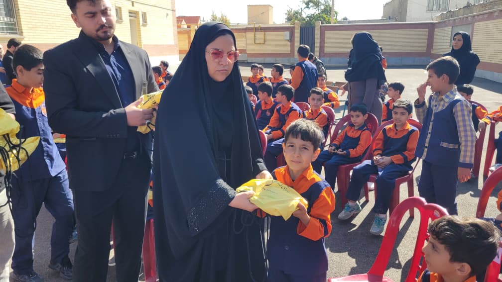 اهدای پکیج لوازمالتحریر توسط صابر فتاحی مسئول پروژههای مدرسهسازی
