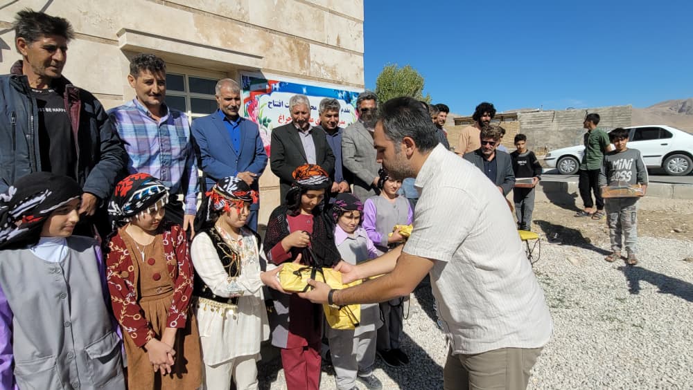 اهدای پکیج لوازمالتحریر توسط علیاصغر ملک خیر مدرسهساز و معتمد بنیاد قلمچی در استان لرستان