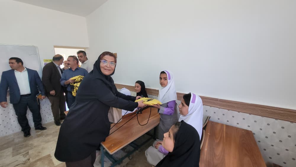 اهدای پکیج لوازمالتحریر توسط نسرین فرامرزی مسئول نمایندگی نورآباد
