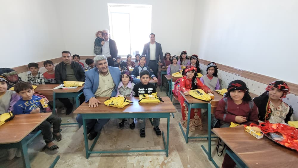 اهدای پکیج لوازمالتحریر توسط صابر فتاحی مسئول پروژههای مدرسهسازی