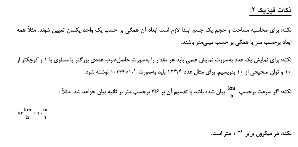 نکات فیزیک 1 و 2 - آزمون 9 مرداد