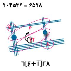 3. به ترتيب از چپ به راست ابتدا در رأس مربع سپس در قطر آن و بعد در رأس سمت راست تعداد نقطههايي را که خطها در آنها يکديگر را قطع کردهاند شمردهايم و ارقام بهدستآورده را به همان ترتيب از چپ به راست به عنوان صدگان، دهگان و يکان عدد قرار دادهايم تا به پاسخ برسيم.
