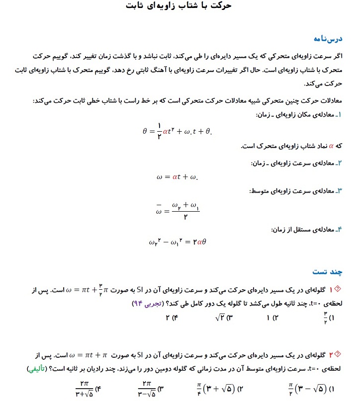 حرکت با شتاب زاویهای ثابت - فیزیک