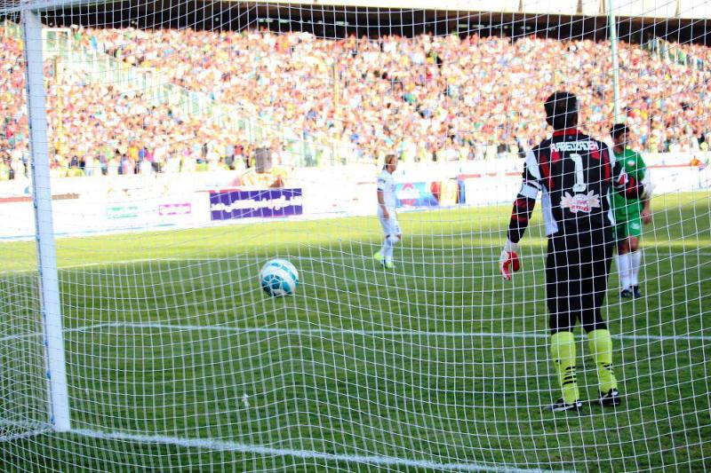 ستارگان ایران 0 ستارگان جهان دو: لوییس فیگو از پشت محوطه جریمه ضربه اش را نواخت که بار دیگر احمدرضا شاهد باز شدن دروازه اش برای بار دوم بود.