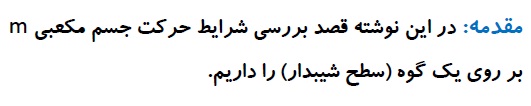 بررسی شرایط حرکت جسم مکعبی بر روی سطح شیب دار ...