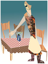 يكي از آن ها پيشنهاد كرد برحسب حروف الفبا كنار هم بنشينند ،يكي گفت بر اساس سن، سومي معدل نمرهها را پيشنهاد كرد، ديگري قدو... . بحثشان طولاني شده بود كه پيشخدمت آن ها را به آرامش دعوت كرد و از آنها خواست تا همان جايي كه ايستاده اند،پشت ميز [دريك رديف] روي صندليها بنشينند.