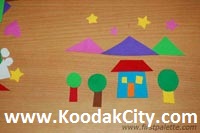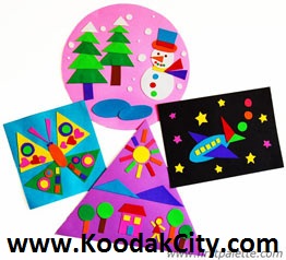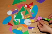 در مرحله بعد تعداد زيادي از شکلهاي هندسي مانند دايره ، مثلث ، مستطيل ، چند ضلعي ، قلب و ستاره را با استفاده از فوم يا مقوا يا کاغذ رنگي ببريد در اين مرحله ميتوانيد از دستگاههاي پانچ مخصوص نيز استفاده کنيد.